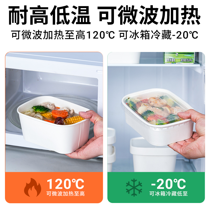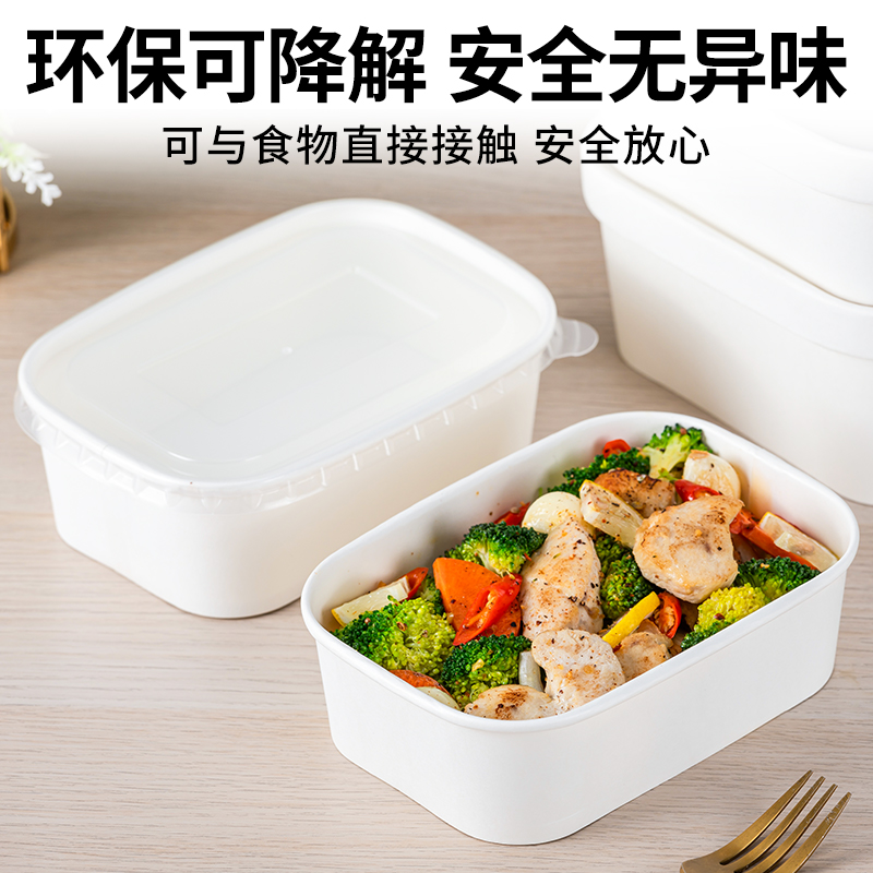 一次性白色牛皮纸餐盒长方形外卖沙拉轻食便当加厚带盖快餐打包盒