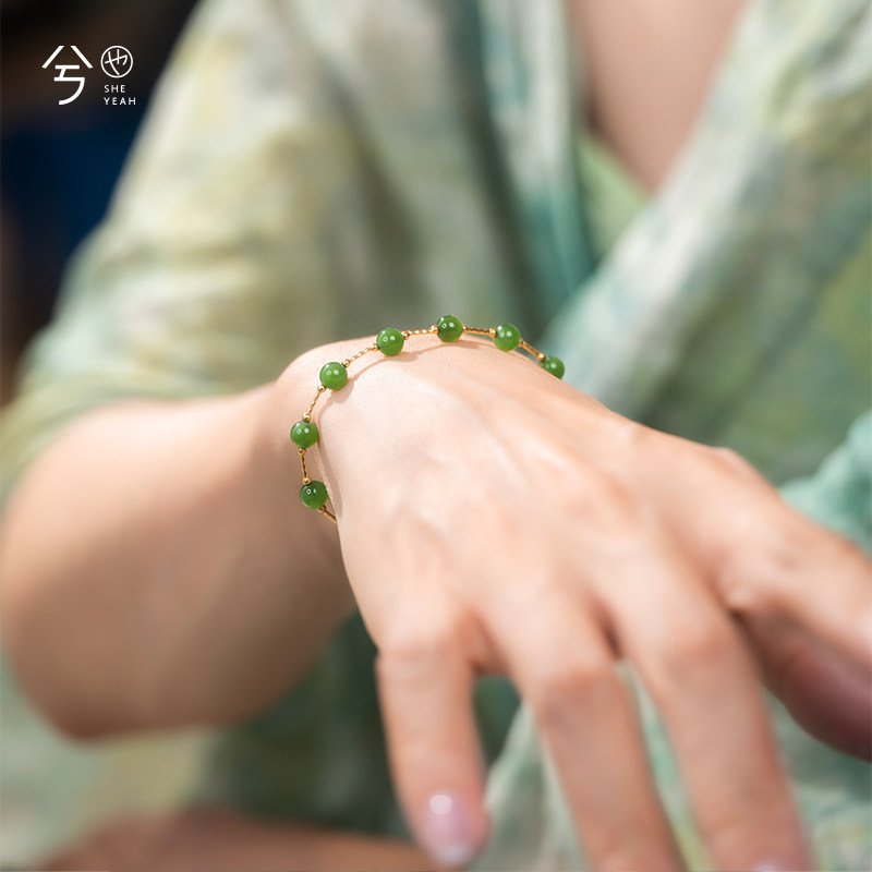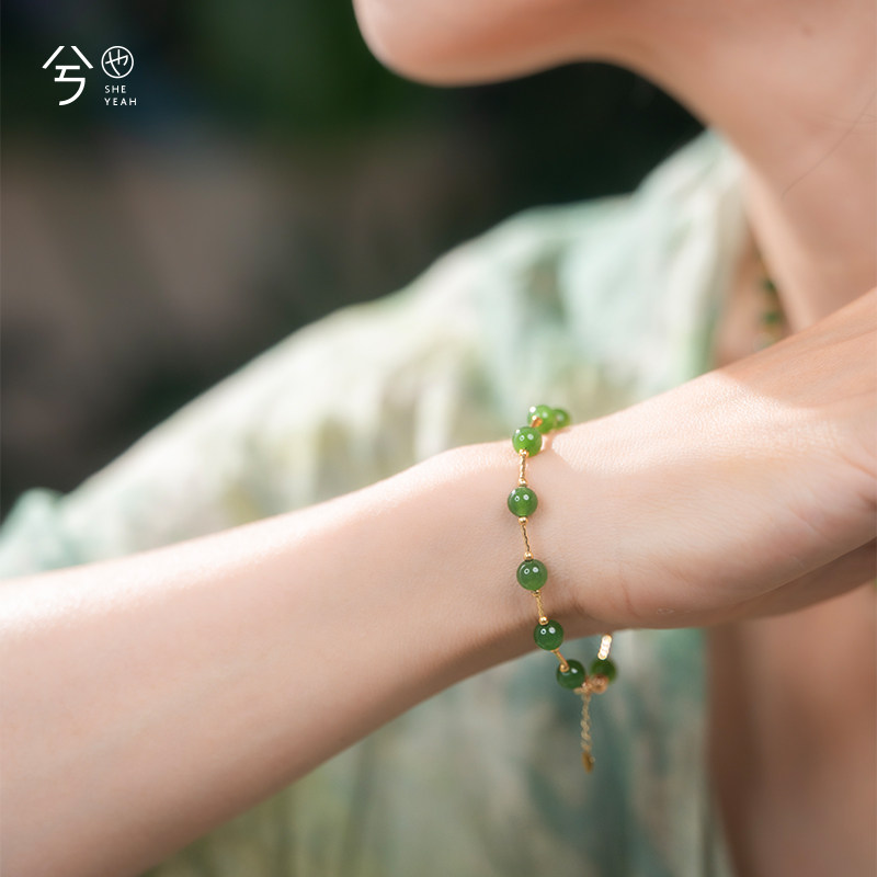 大拉原创设计天然和田玉满天星手链正阳绿碧玉锁骨链高级感长颈链