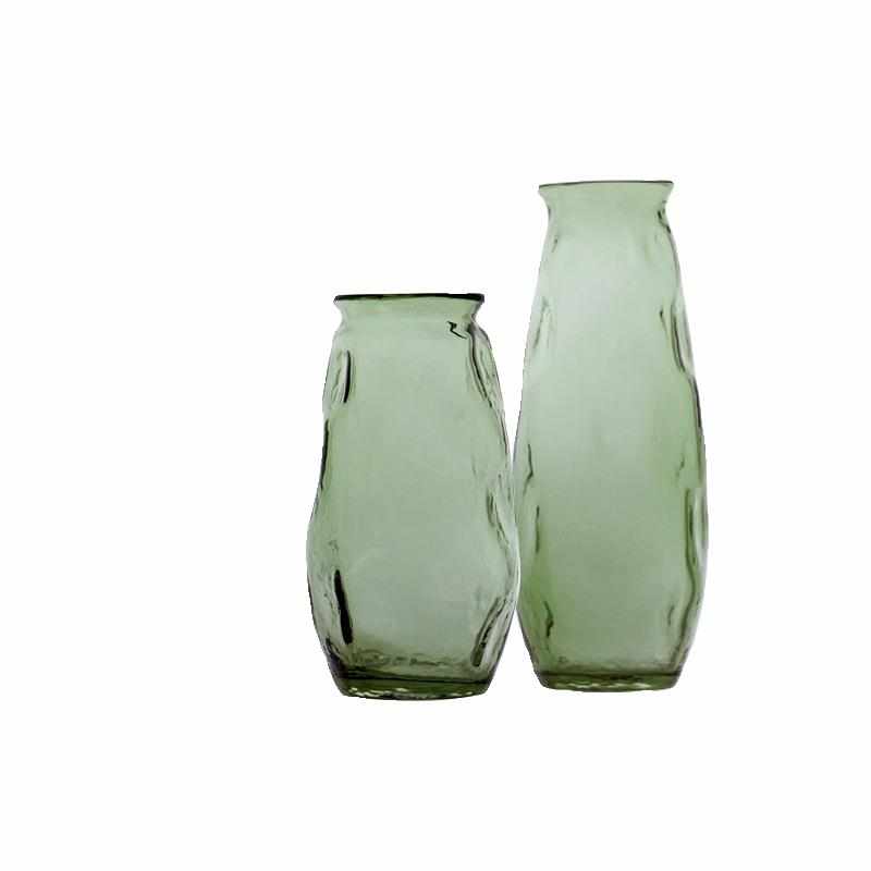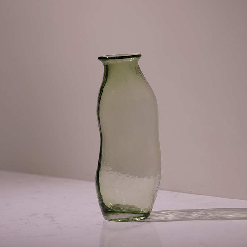 碧轩新品现代简约开口淡绿色不规则玻璃花瓶客厅装饰摆件