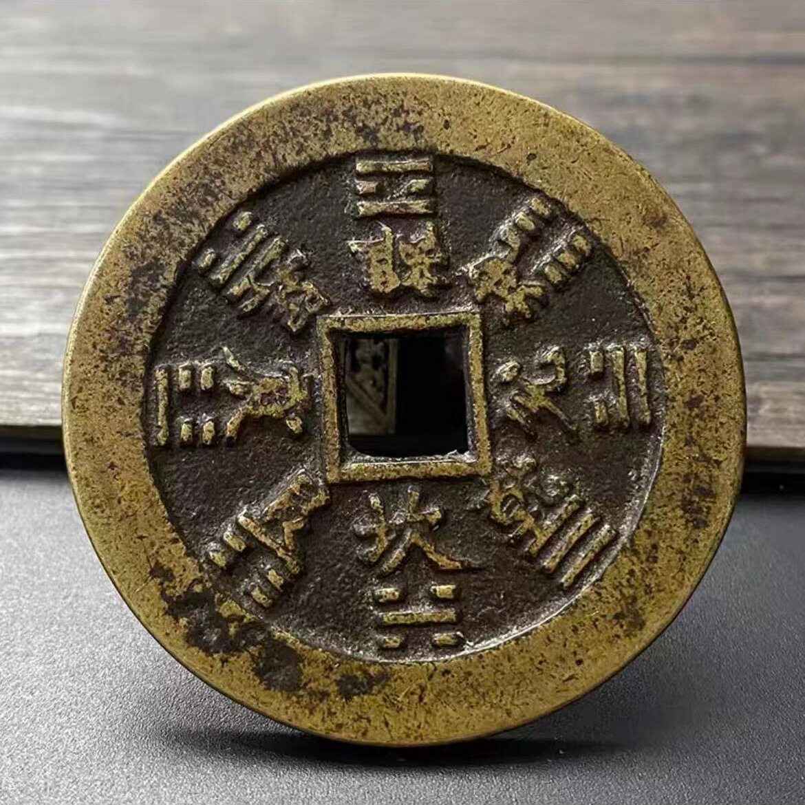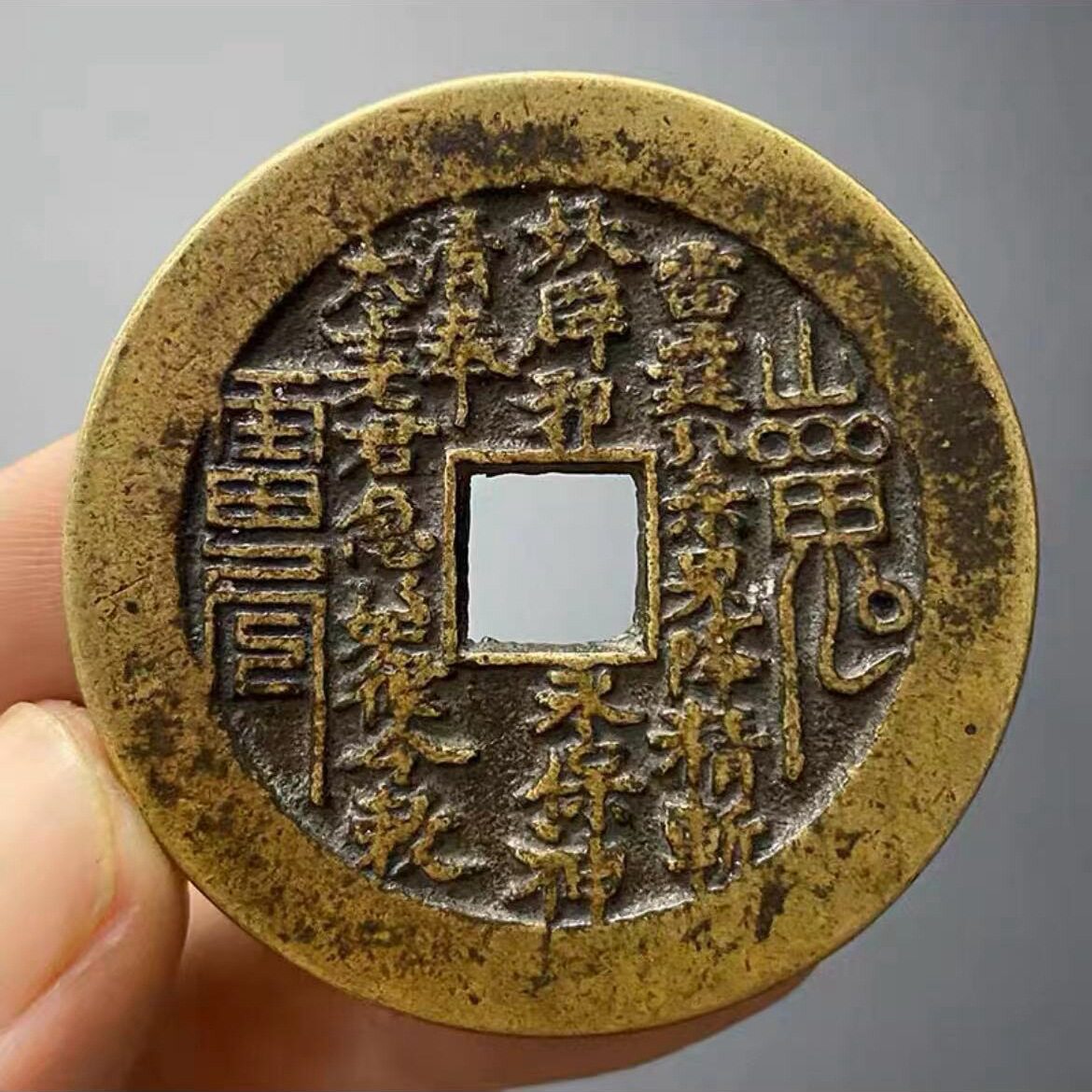 真品包浆老道山鬼花钱 山鬼雷霆 压祟钱 厌胜钱 古代钱币 压胜钱
