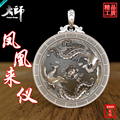 双鹤献日实心99纯银吊坠立体实心鸟兽足银项链可刻字祝寿项坠