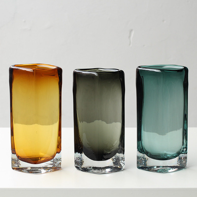 SoftHome现代简约厚重扁形烟灰方口花瓶房客厅酒店软装几何摆件