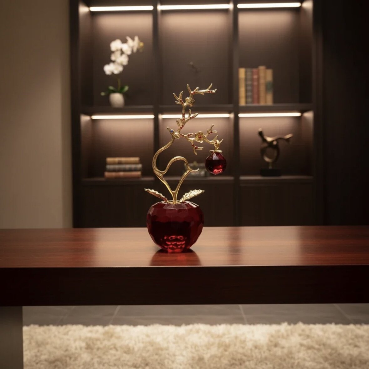 红色一鹿平安玻璃苹果家居装饰品适合玄关客厅酒柜摆放