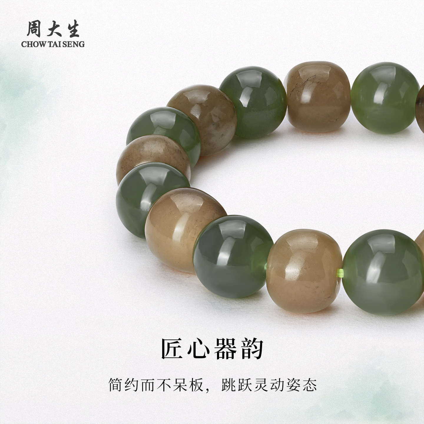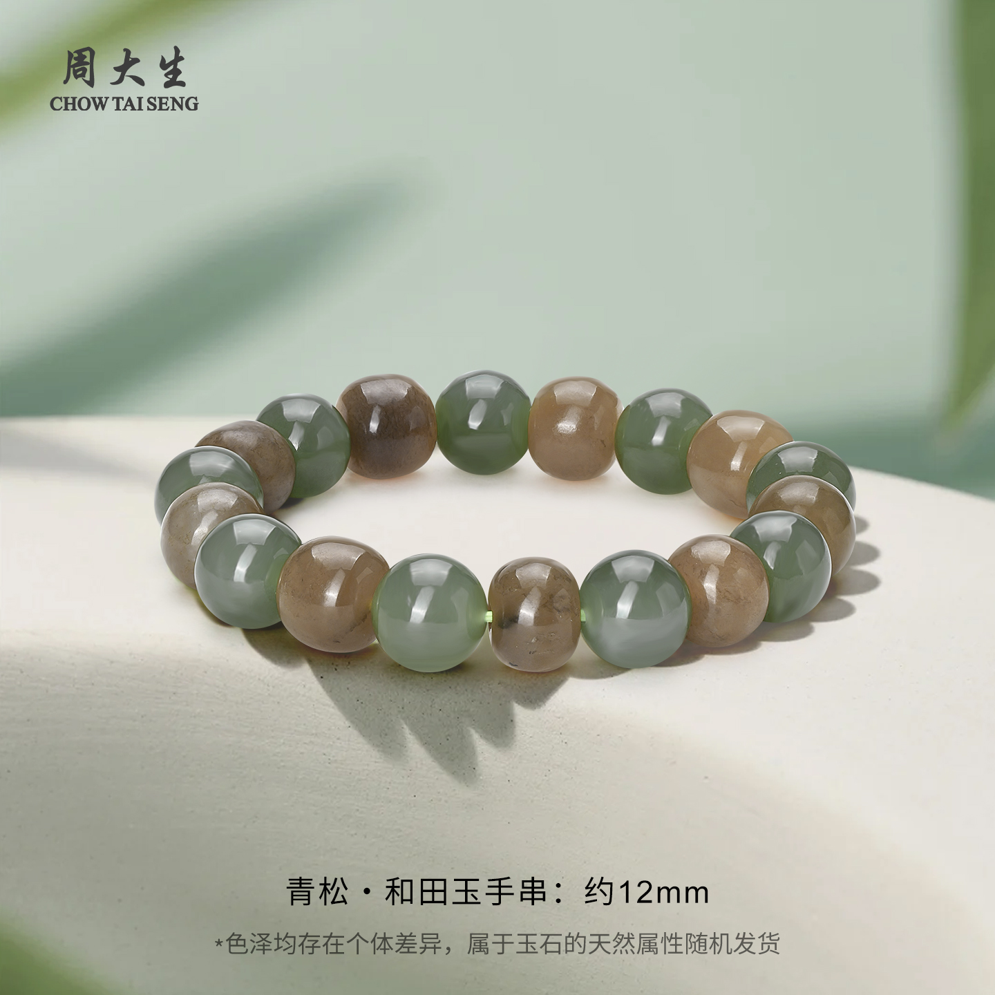 周大生官方和田玉糖玉青松手串天然玉石高端手饰生日礼物送女友