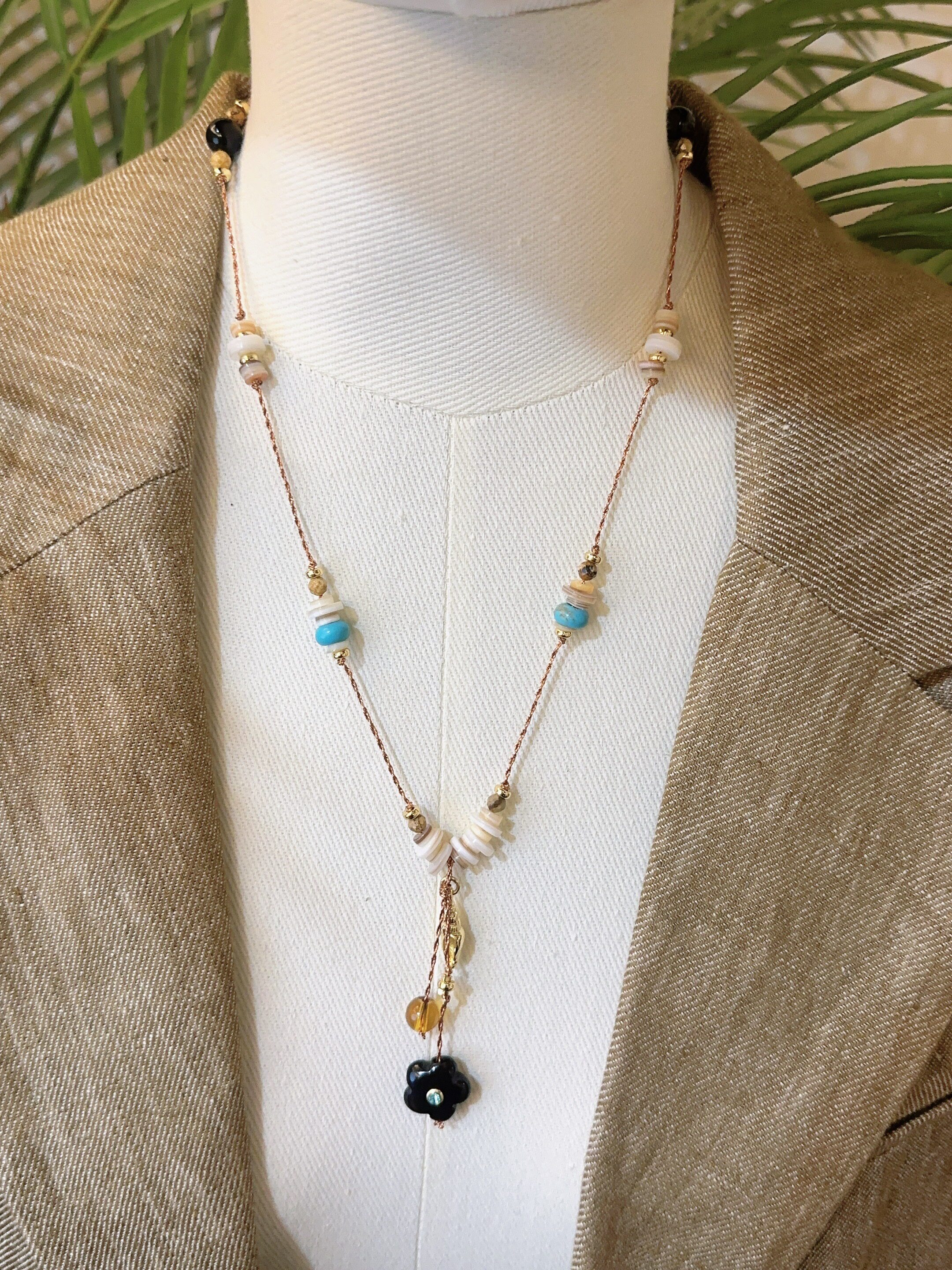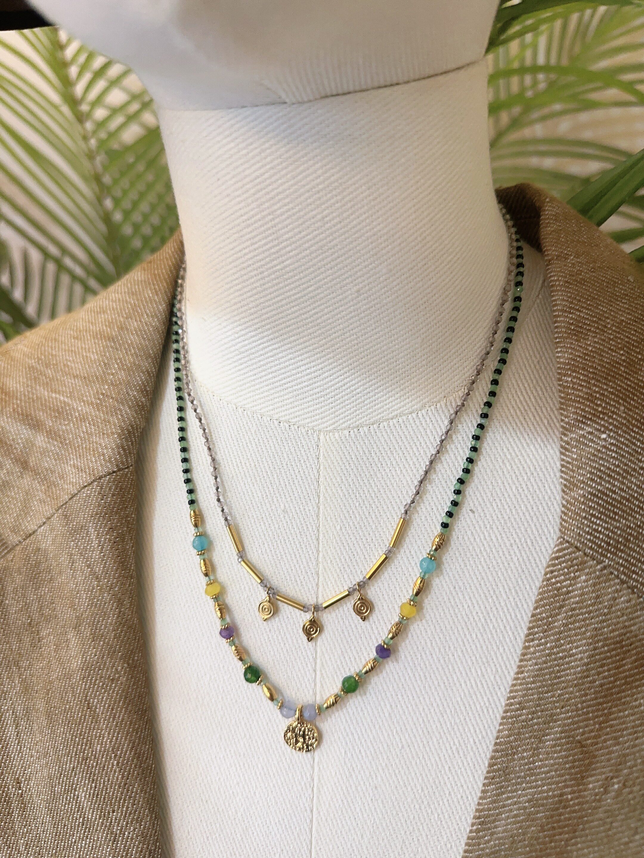 2026新款南法风情浪漫串珠保色项链黑尖晶捷克琉璃