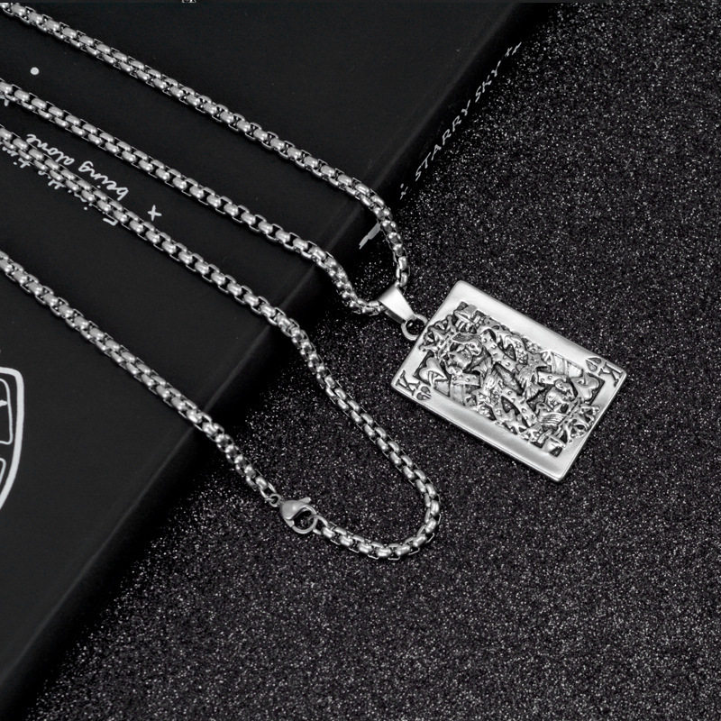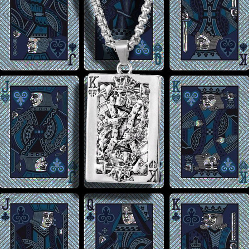 【好运】扑克牌嘻哈项链男老K吊坠个性欧美潮人骷髅头摇滚音乐节
