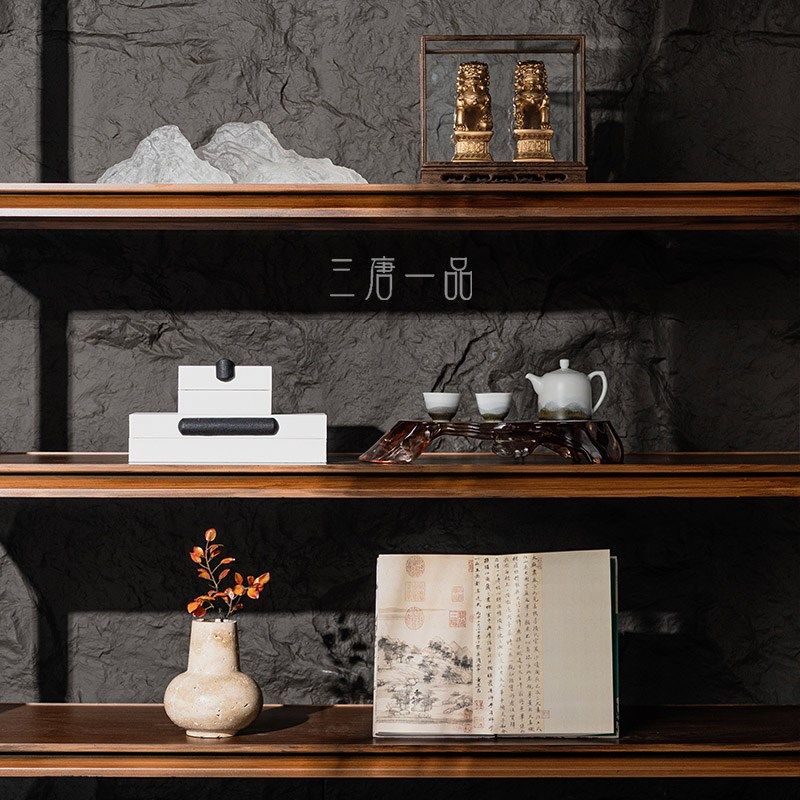 新中式样板间书房茶室展示柜软装组合摆件设计师酒店陈列室装饰品