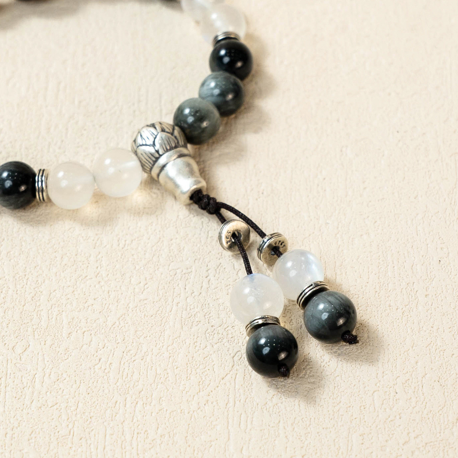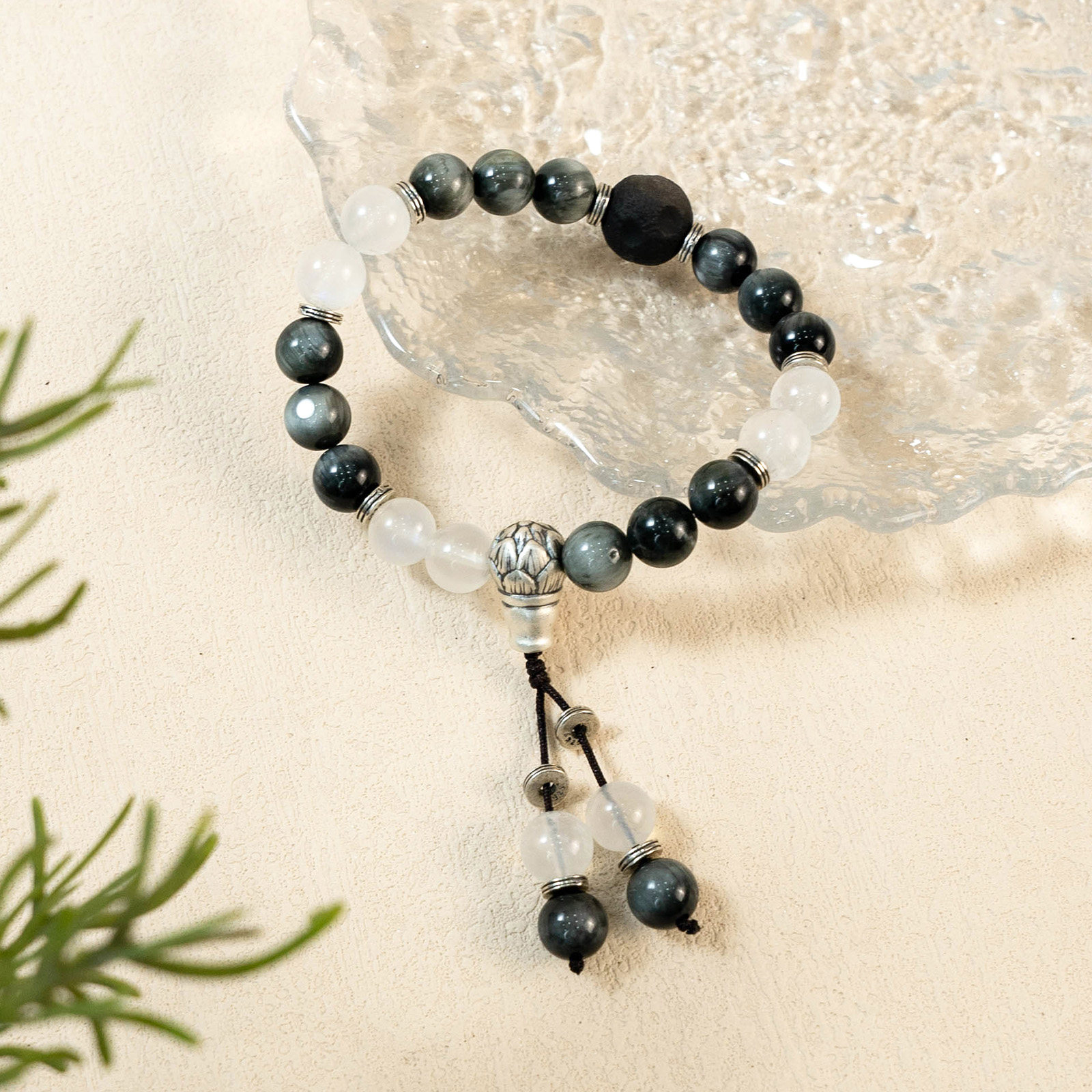 【护身纳福】鹰眼石莲花手串范李李白月光黑陨石银饰水晶手链