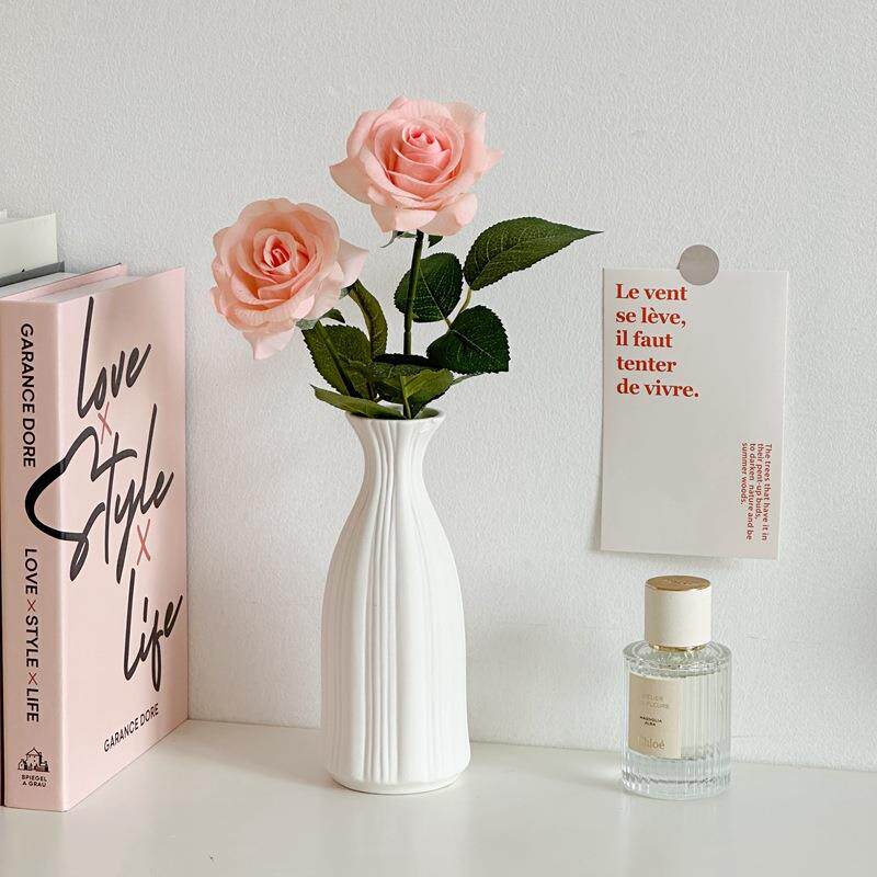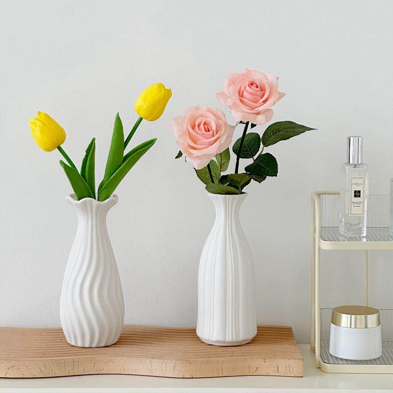 白色陶瓷花瓶北欧桌面插花仿真花器高级感郁金香客厅玄关装饰摆件