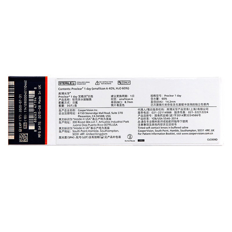 库博光学隐形近视眼镜日抛盒宝晴润30片*2盒水凝胶