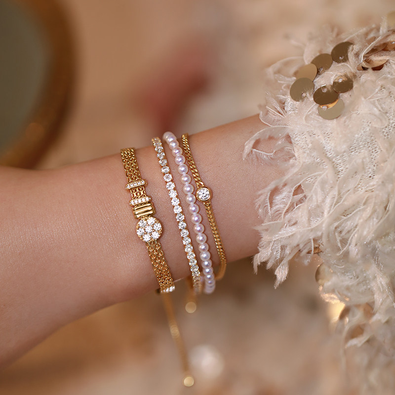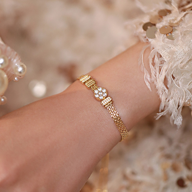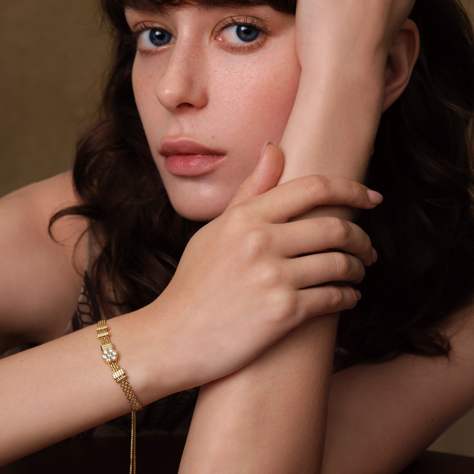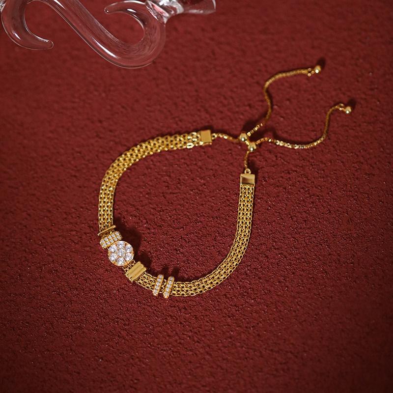 《詹妮弗》复古宫廷设计感精致编织表带可调节纯银手链女金色新年