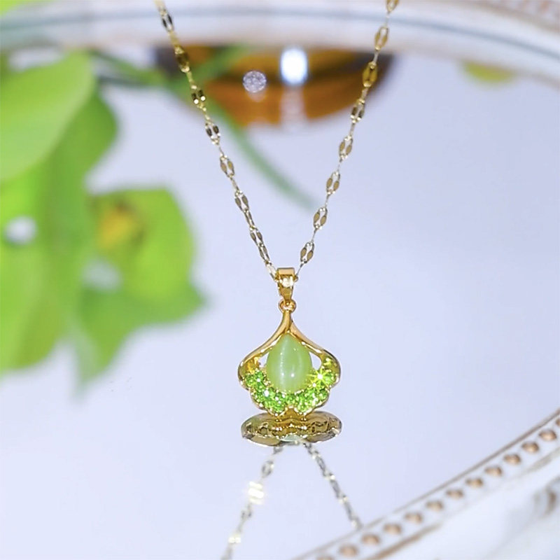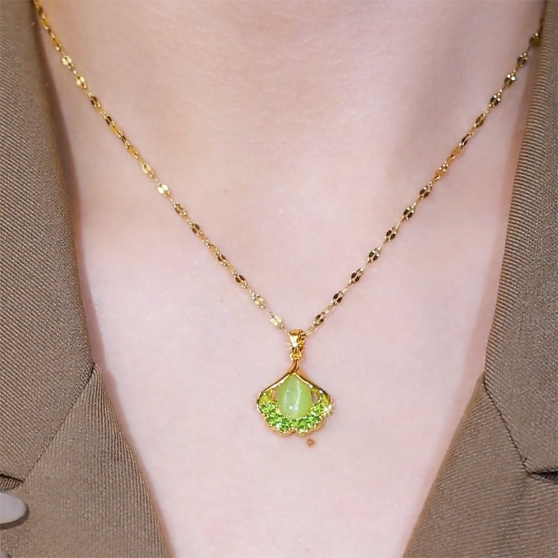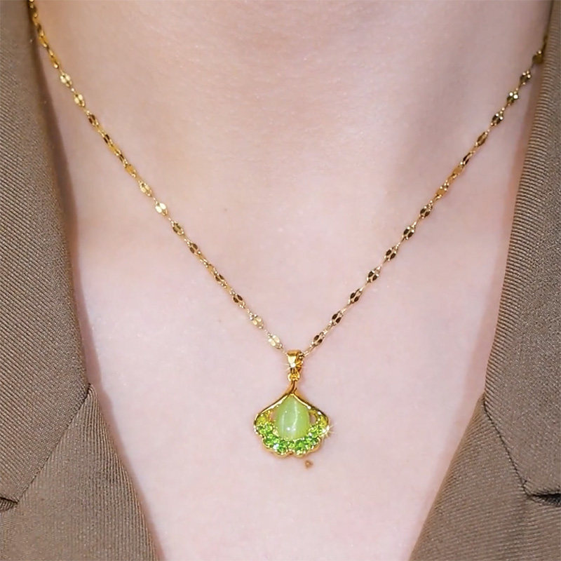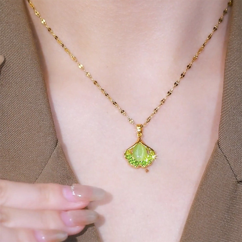 新款绿色银杏叶吊坠钛钢项链小众设计锁骨链时尚气质百搭清新颈链