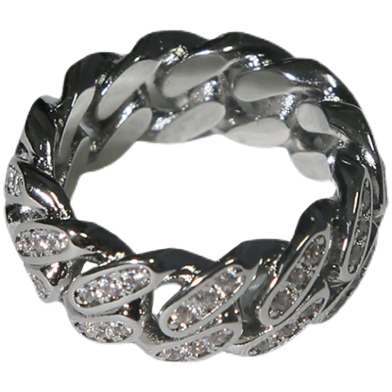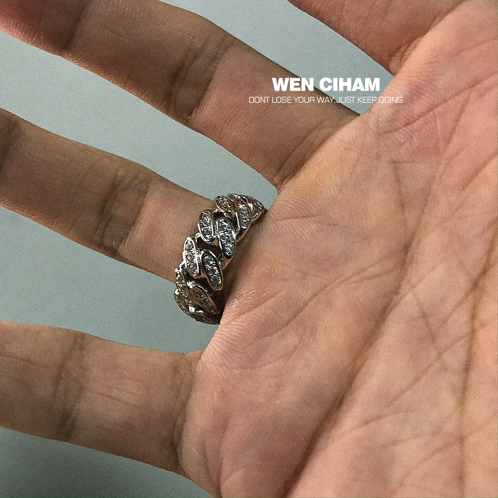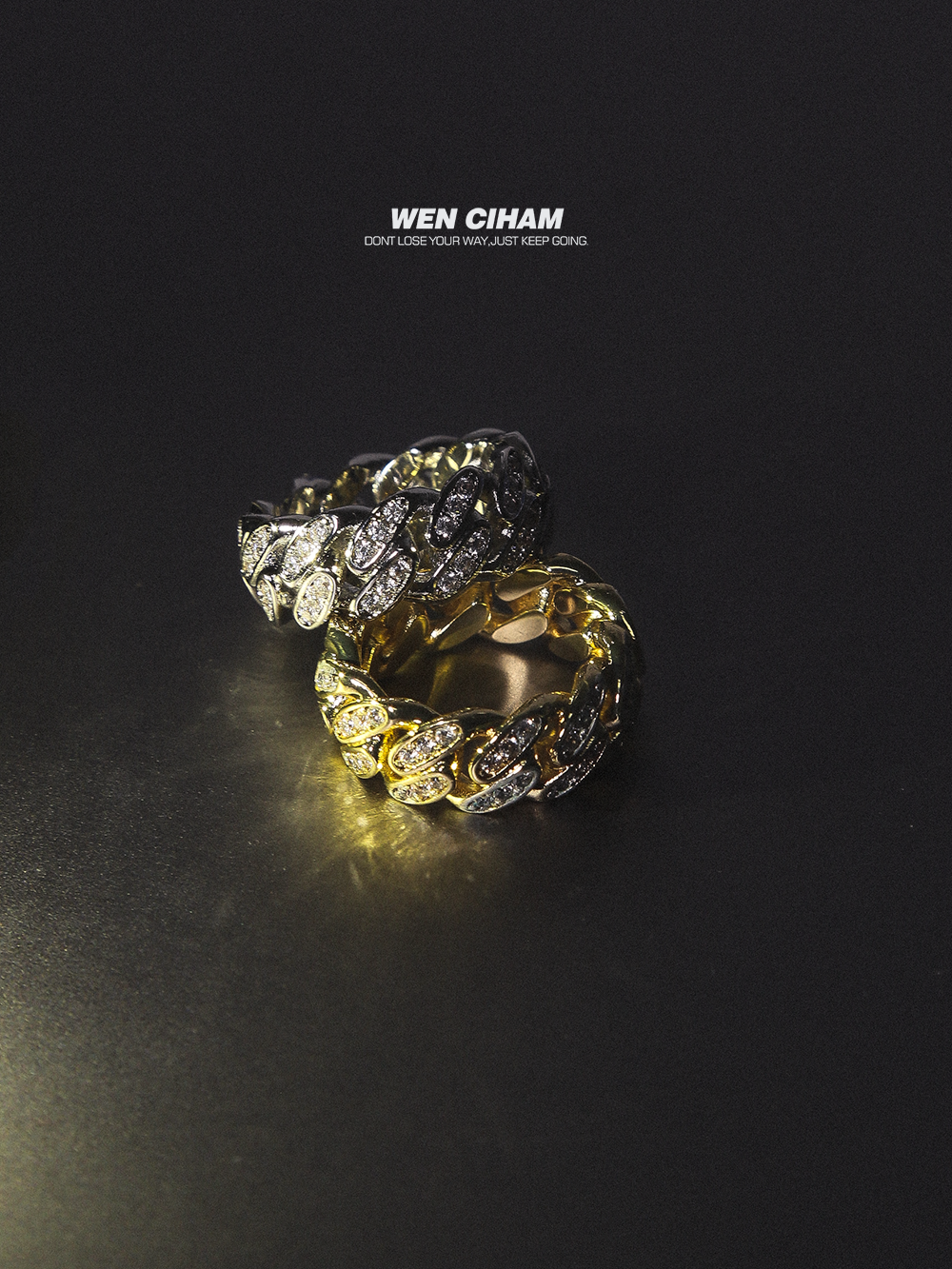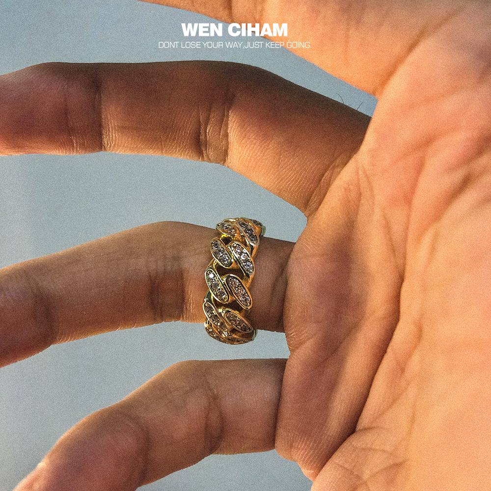 WEN CIHAM迷你古巴链满钻镶钻锆石金色银色电镀西海岸嘻哈戒指男