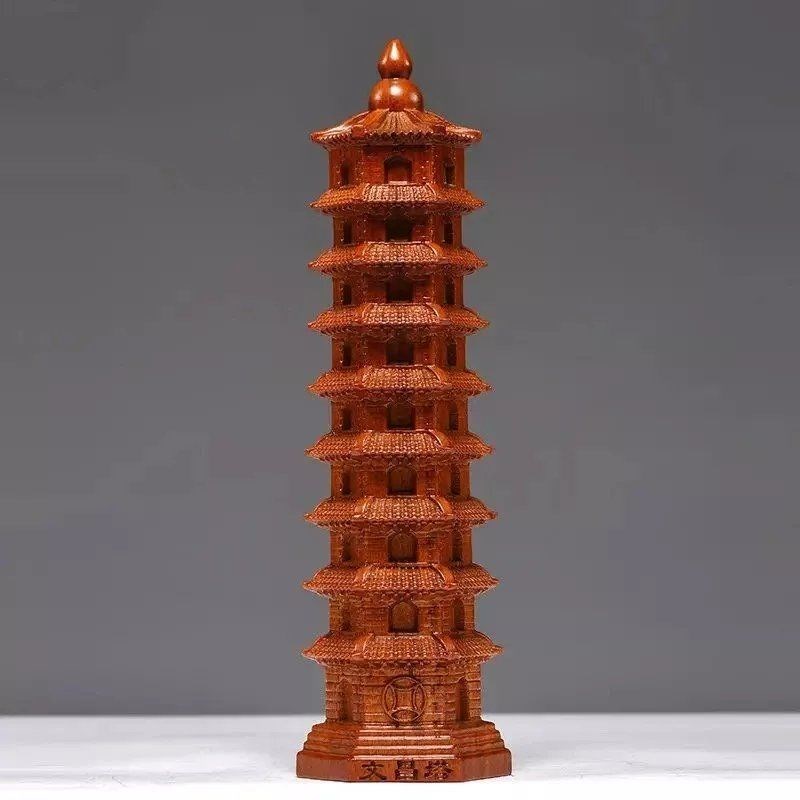 绿色木质13层文昌塔摆件u礼品实木质九层文昌塔家居办公室装饰摆