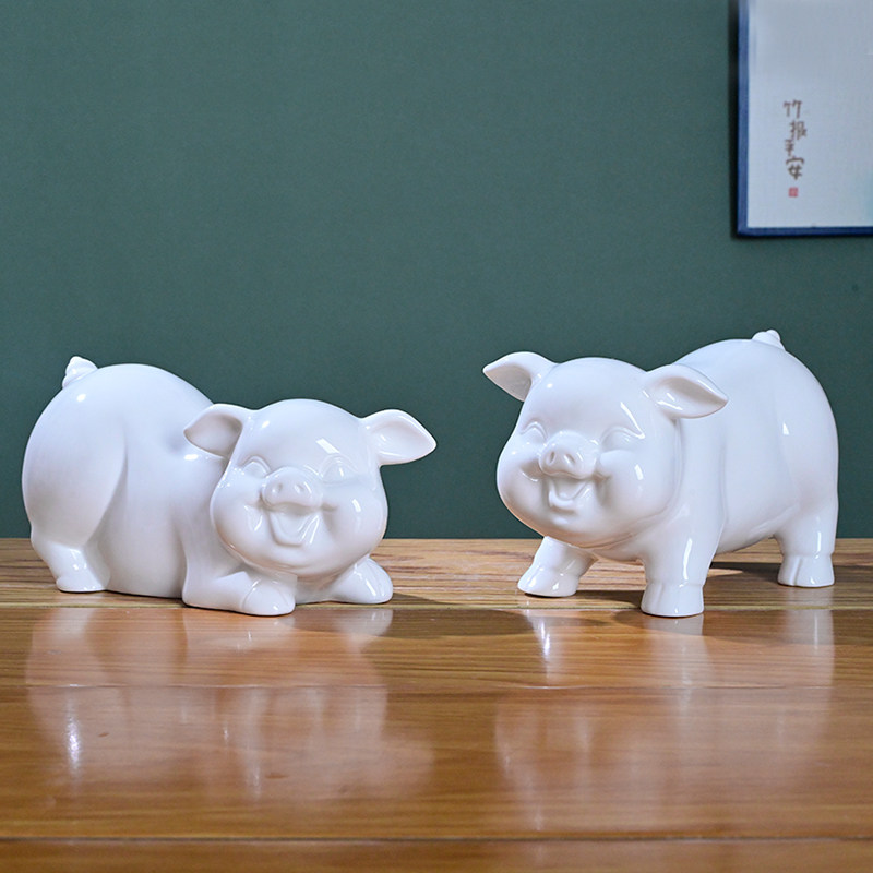黑色陶瓷猪摆件招财镇宅瓷器十二生肖发财风水客厅玄关立趴猪摆设