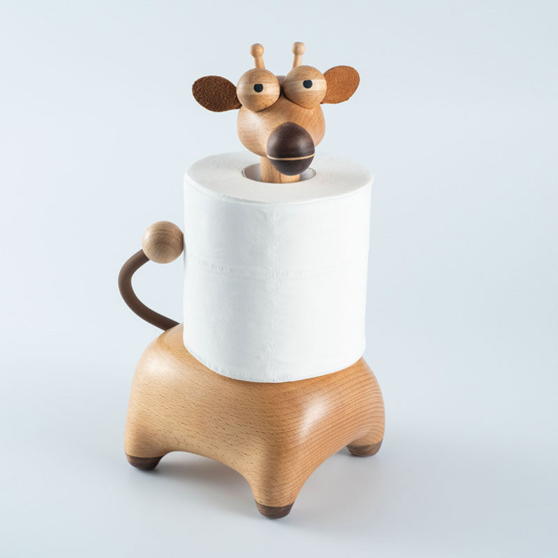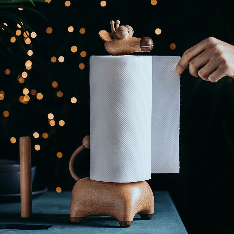 原创设计可爱装饰摆件长颈鹿实木厨房纸巾架乔迁温居礼物卷纸架