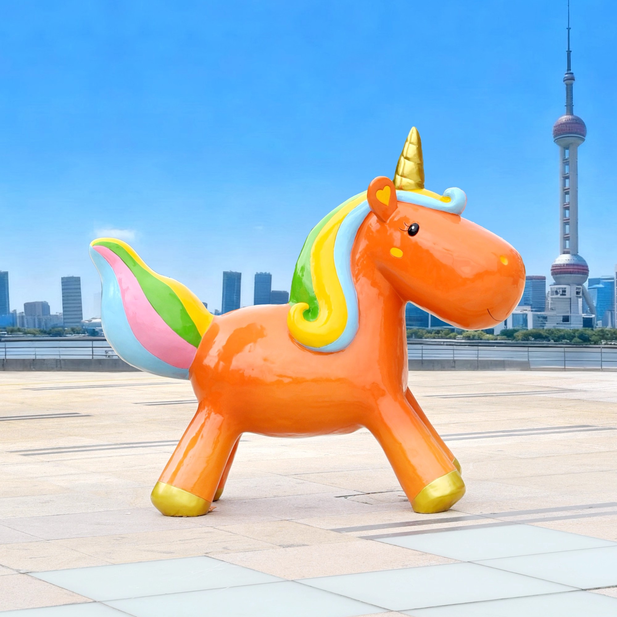 户外仿真独角兽雕塑玻璃钢发光独角兽摆件商场公园景区落地装饰品