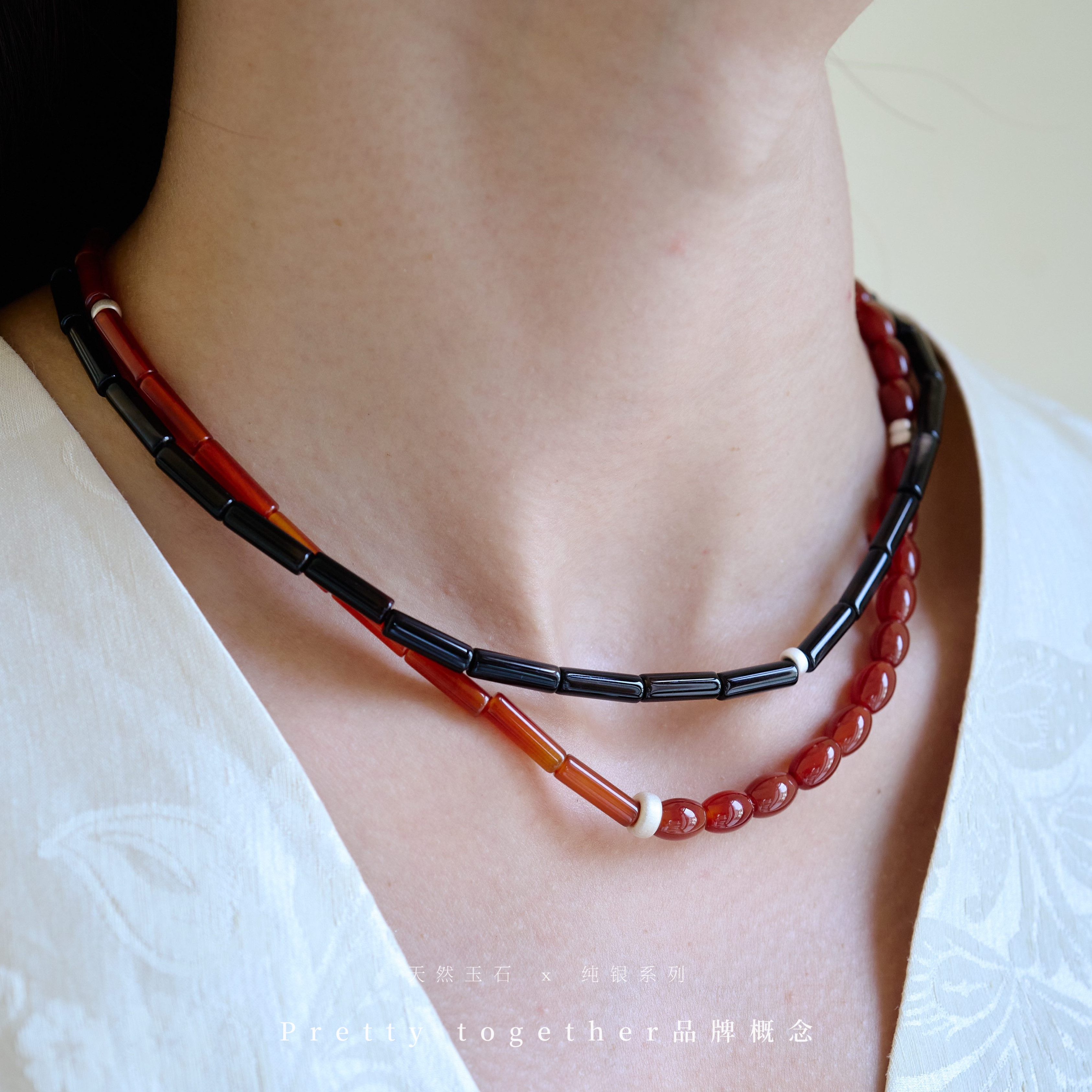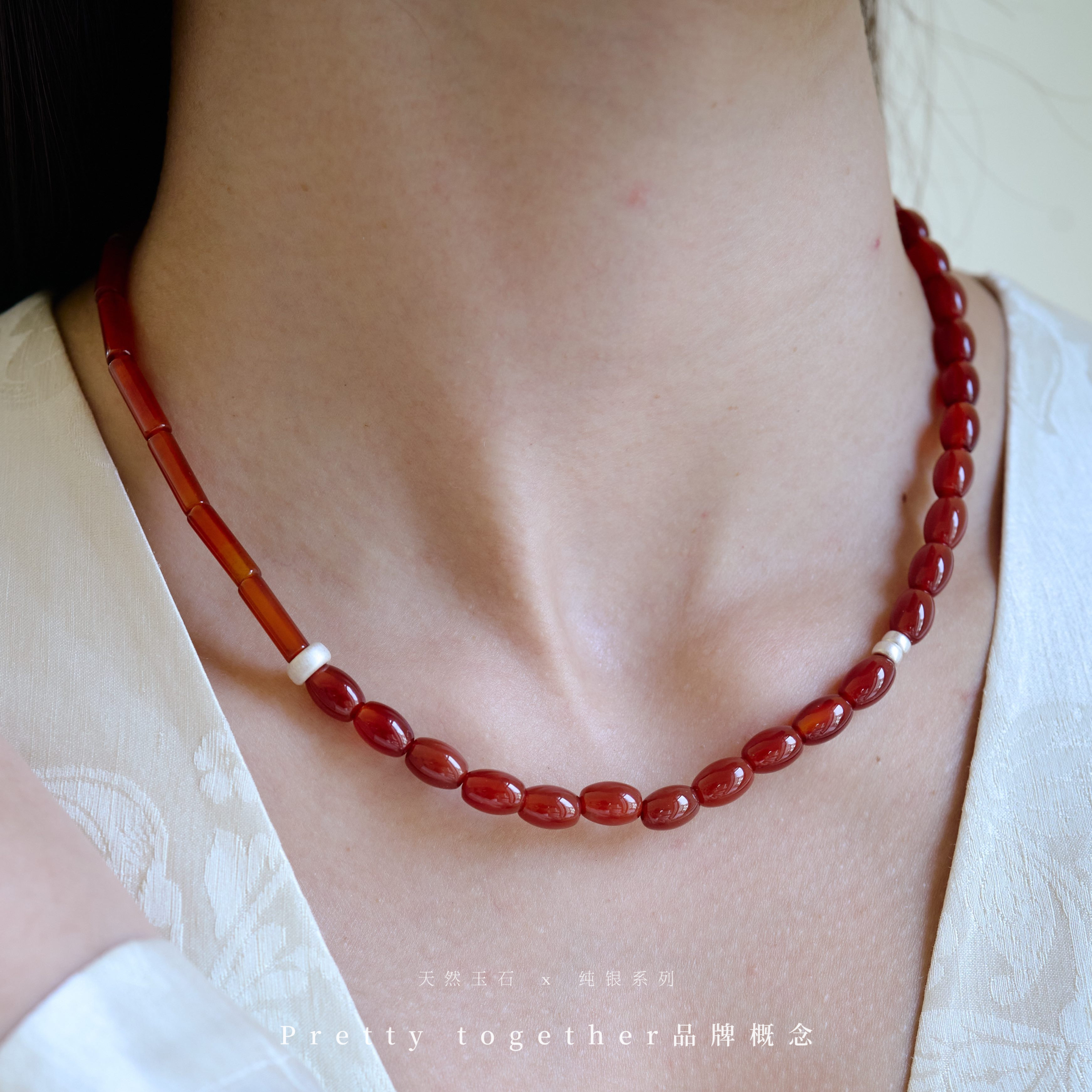 红色玛瑙串珠玉石复古新中式小众特别本命年度假亮色颈链锁骨链女