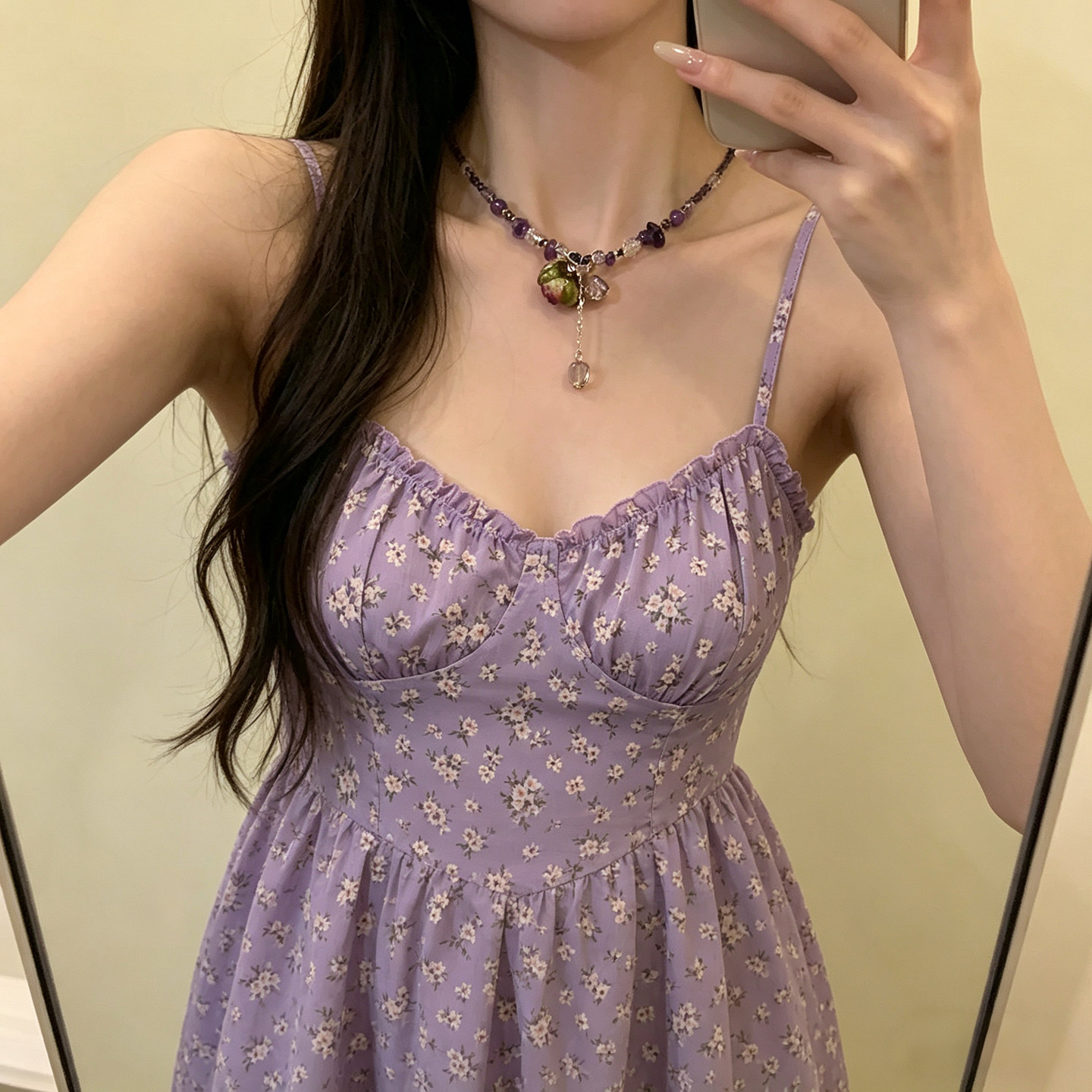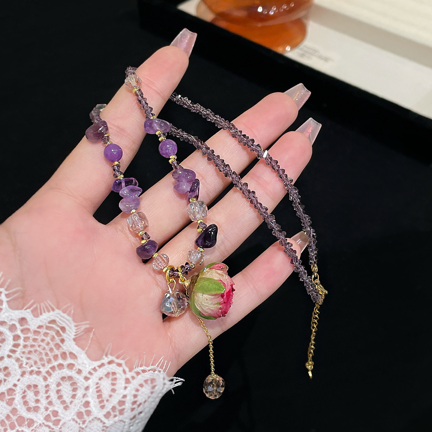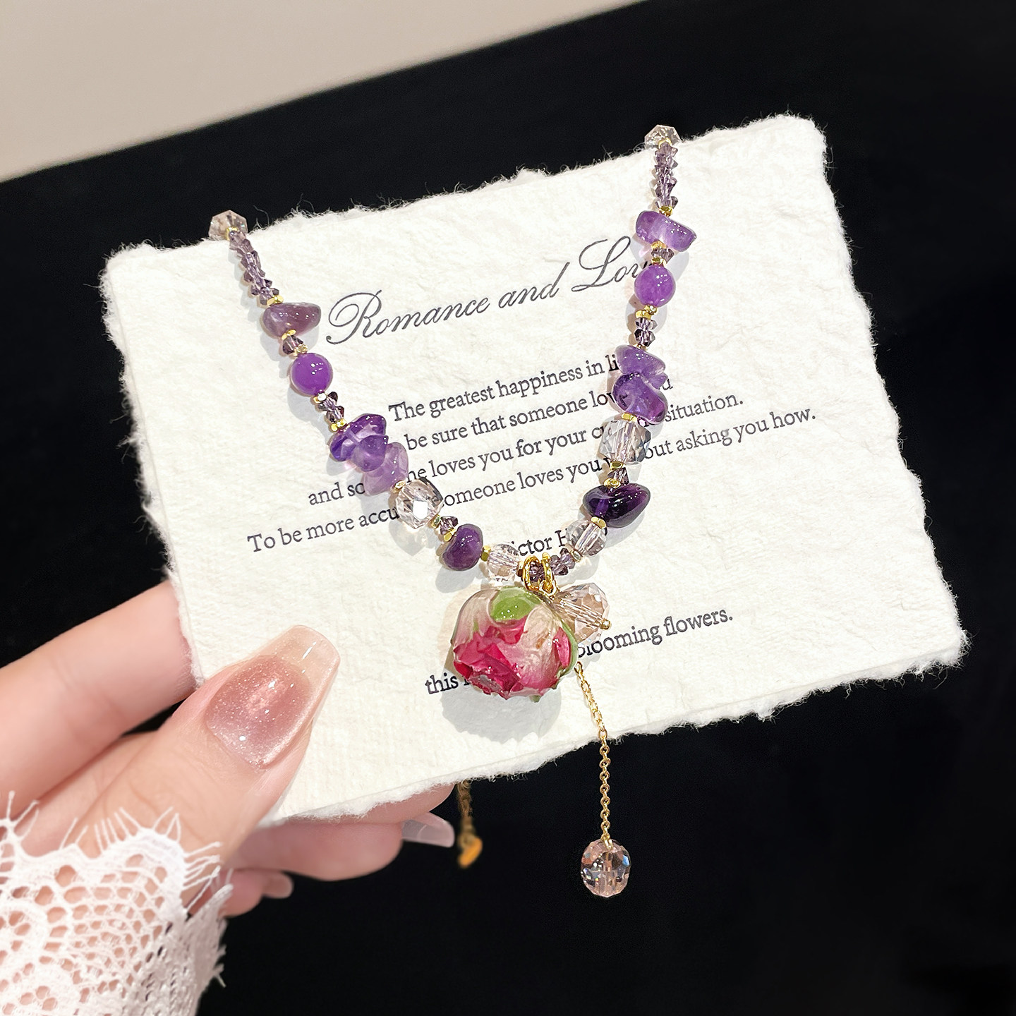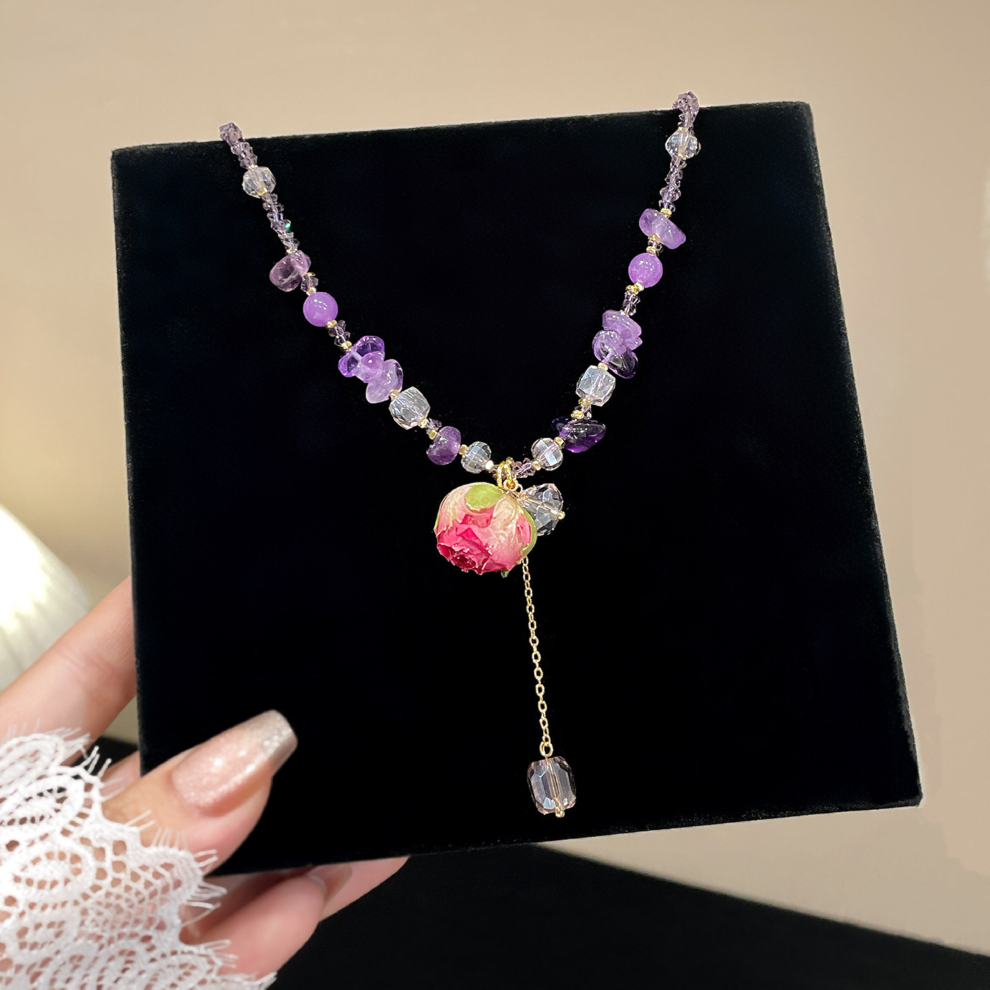 紫色玫瑰花串珠吊坠项链女高级感轻奢小众锁骨链女款2026新款颈链