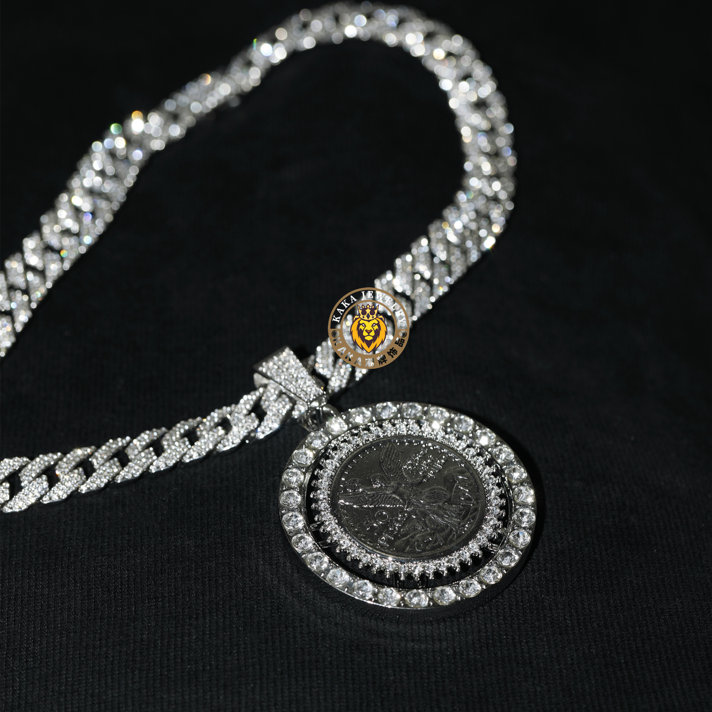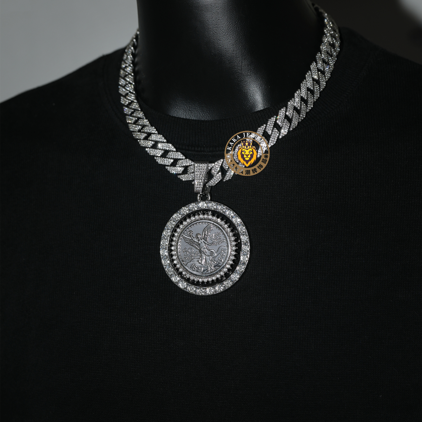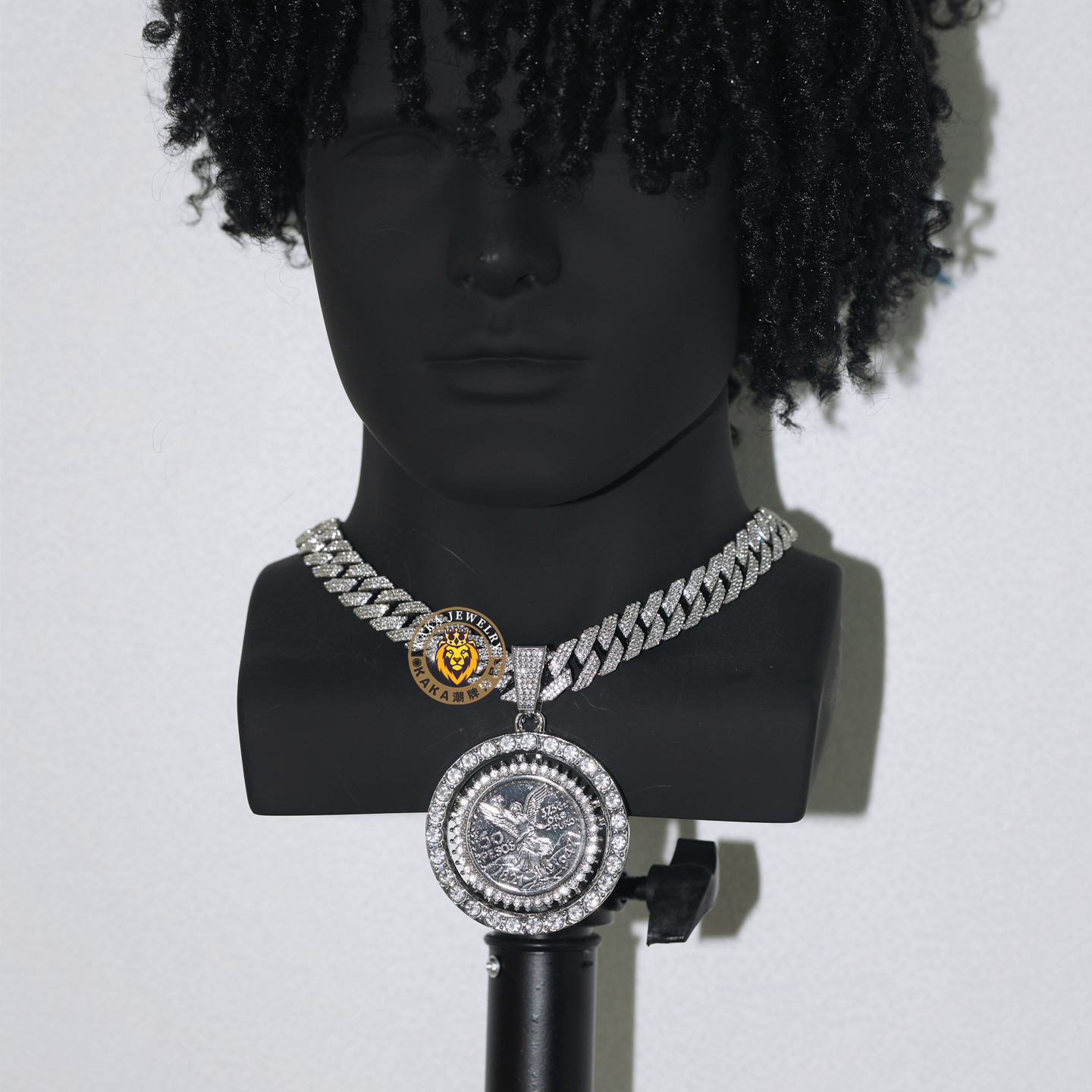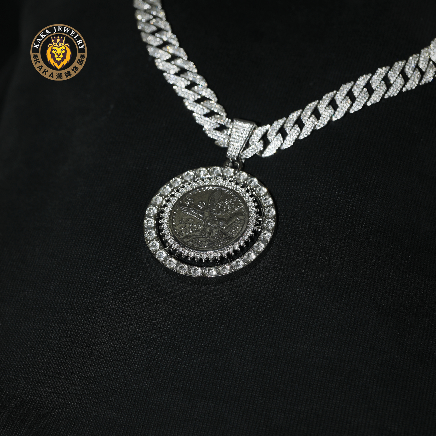 超闪美式西海岸嘻哈转动天使镶钻圆盘吊坠15MM重工菱形古巴链欧美