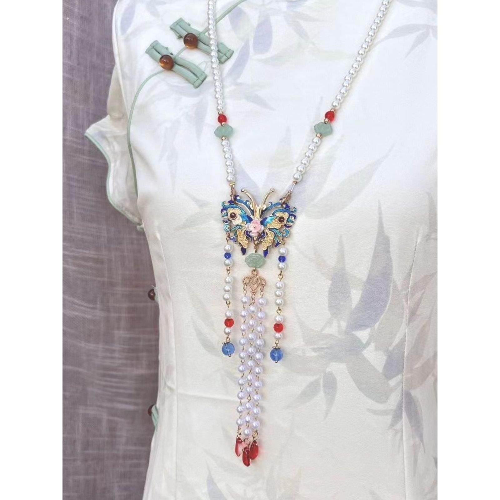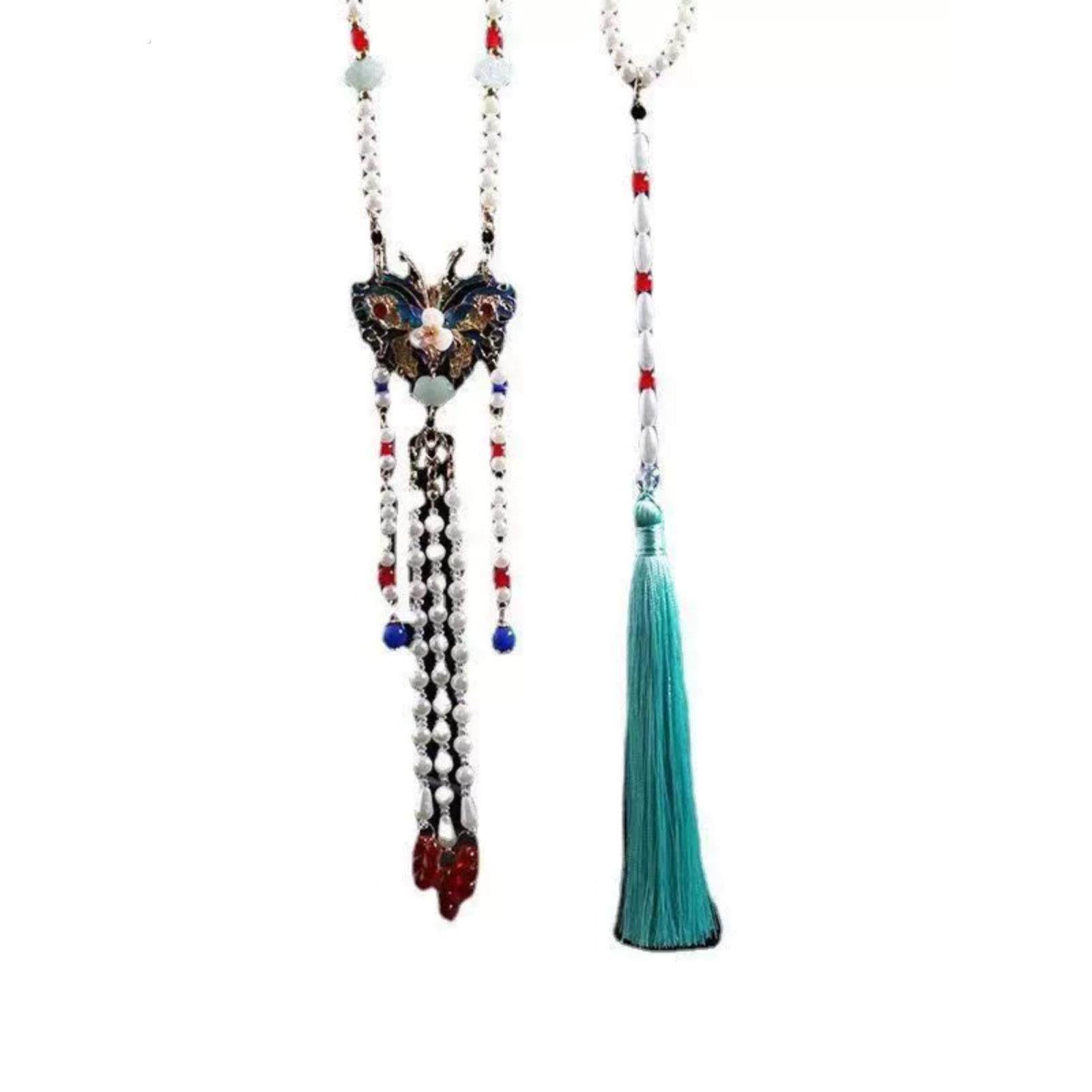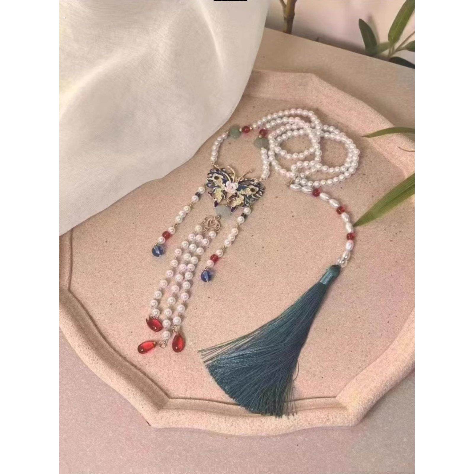 新中式马面裙项链上衣配饰女童长璎珞背云流苏古风汉服吊坠国风女