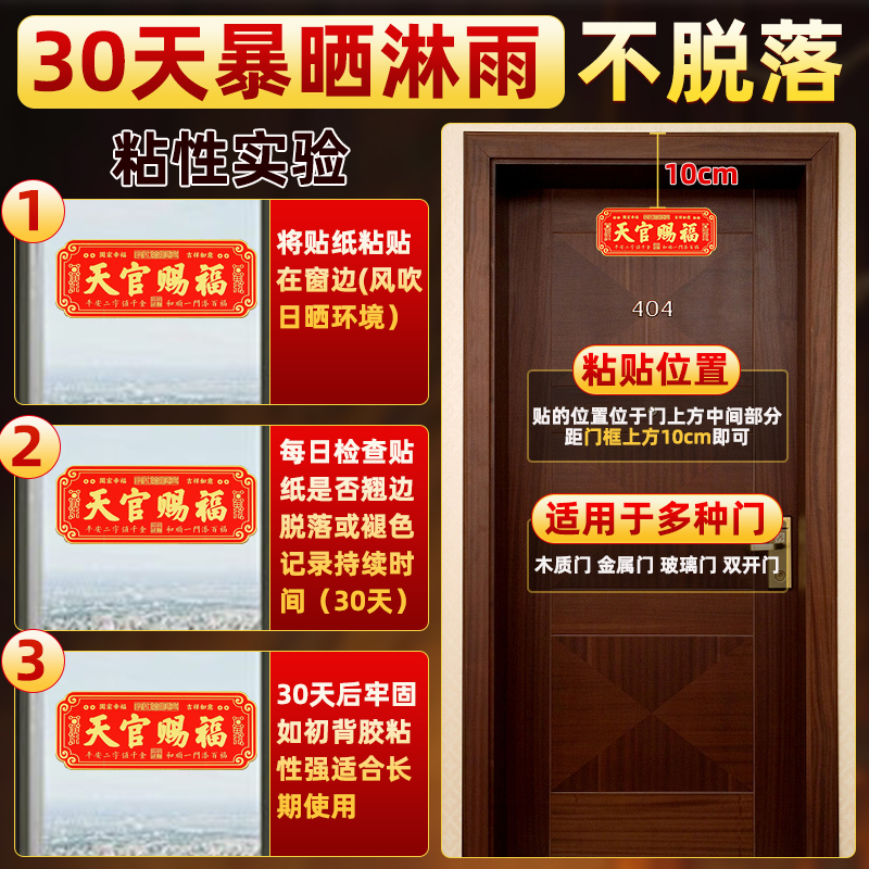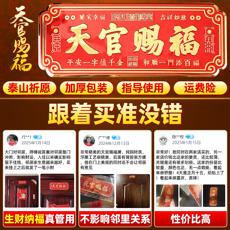 天官赐福门贴挂件牌匾合金属入户门对邻居大门对门卧室乔迁搬家