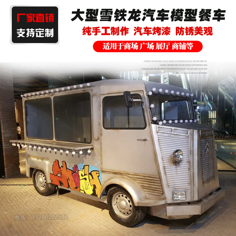 定做铁艺雪铁龙汽车模型售卖车商场商铺商铺活动大型装饰校车餐车
