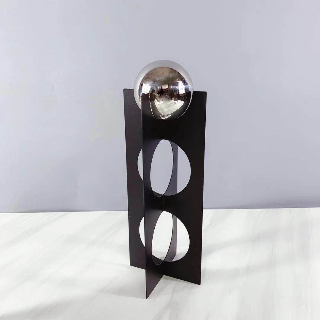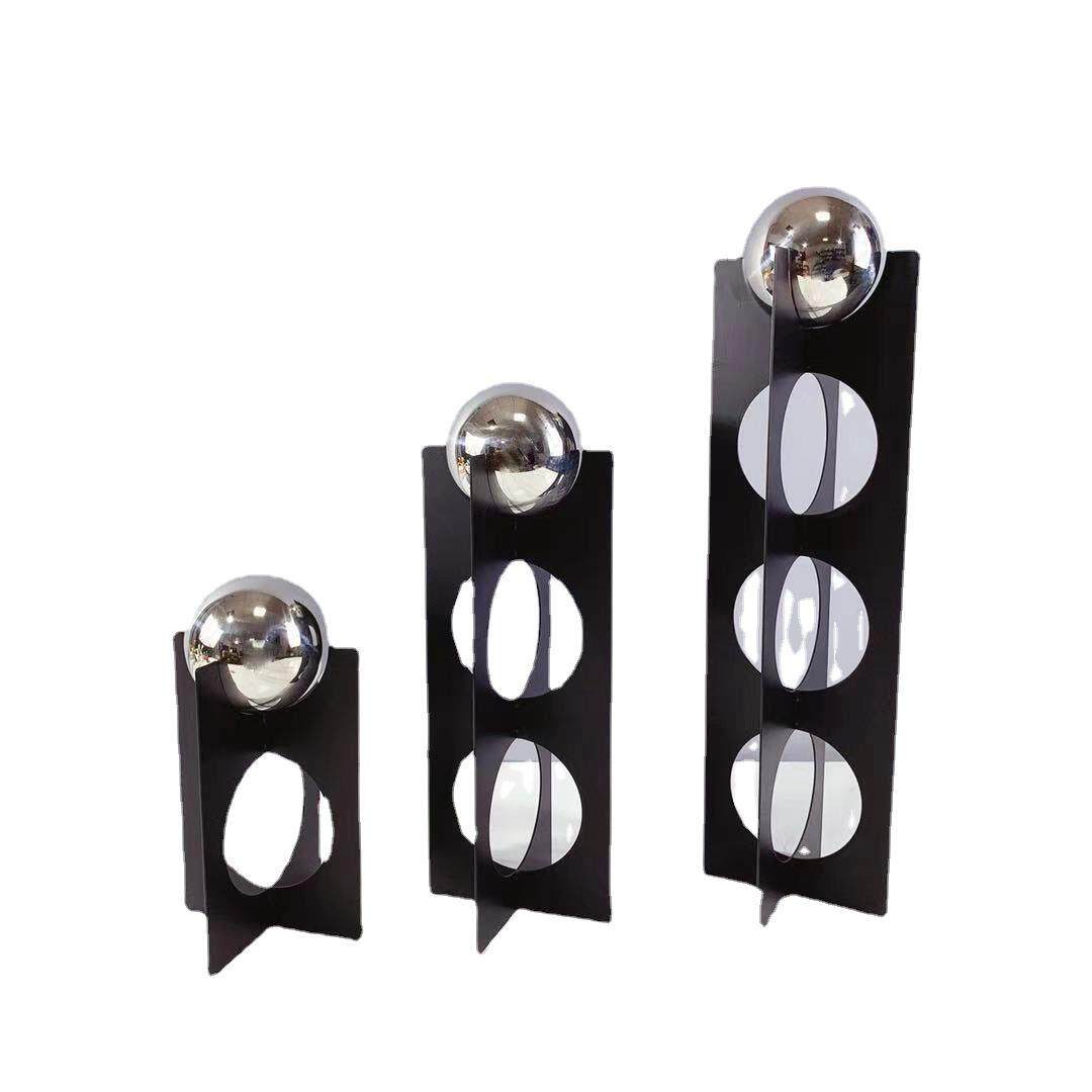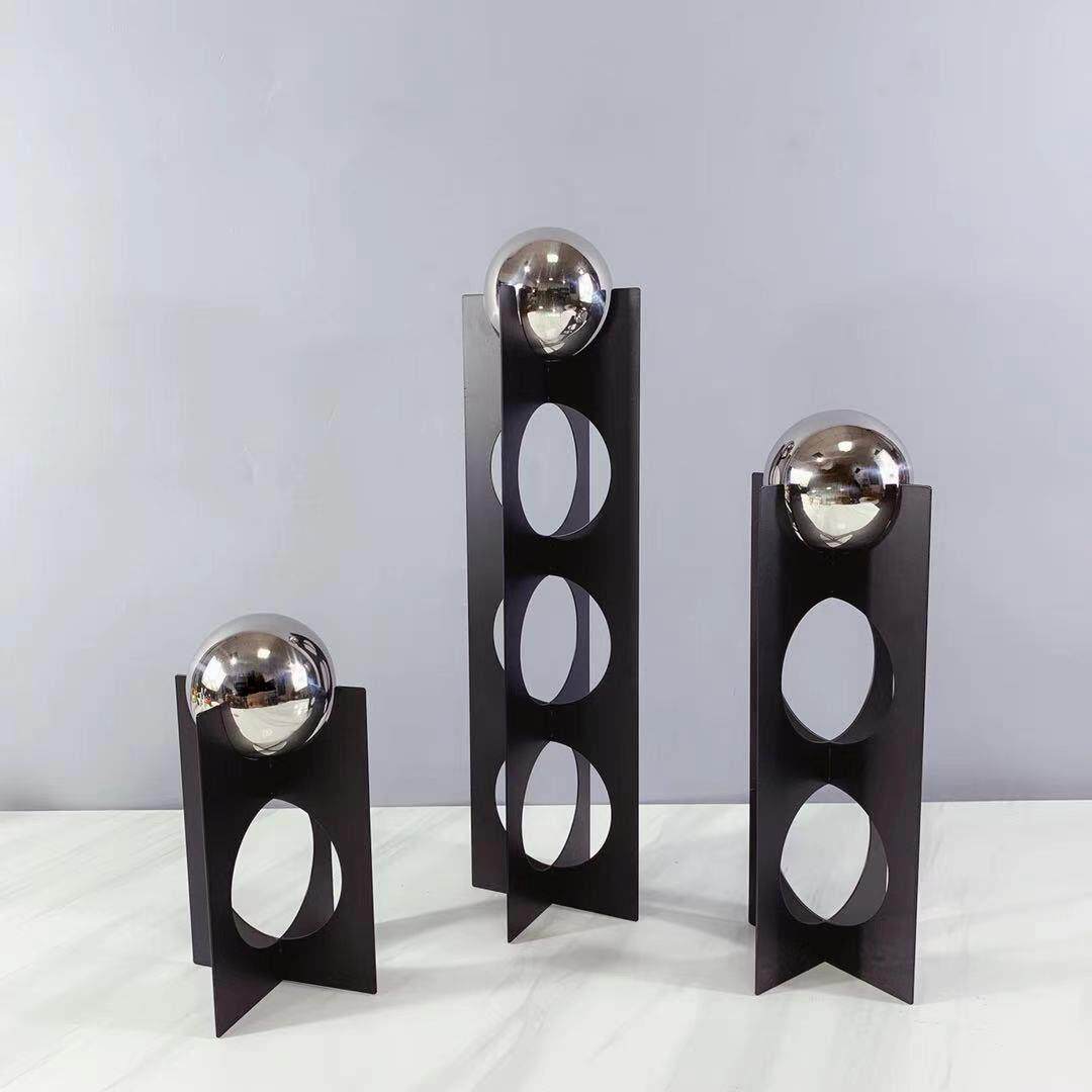 简约现代黑色金属几何支架装饰球摆件样板间客厅电视柜软装饰品