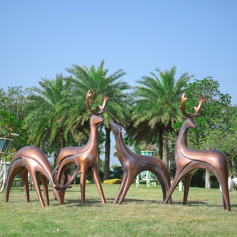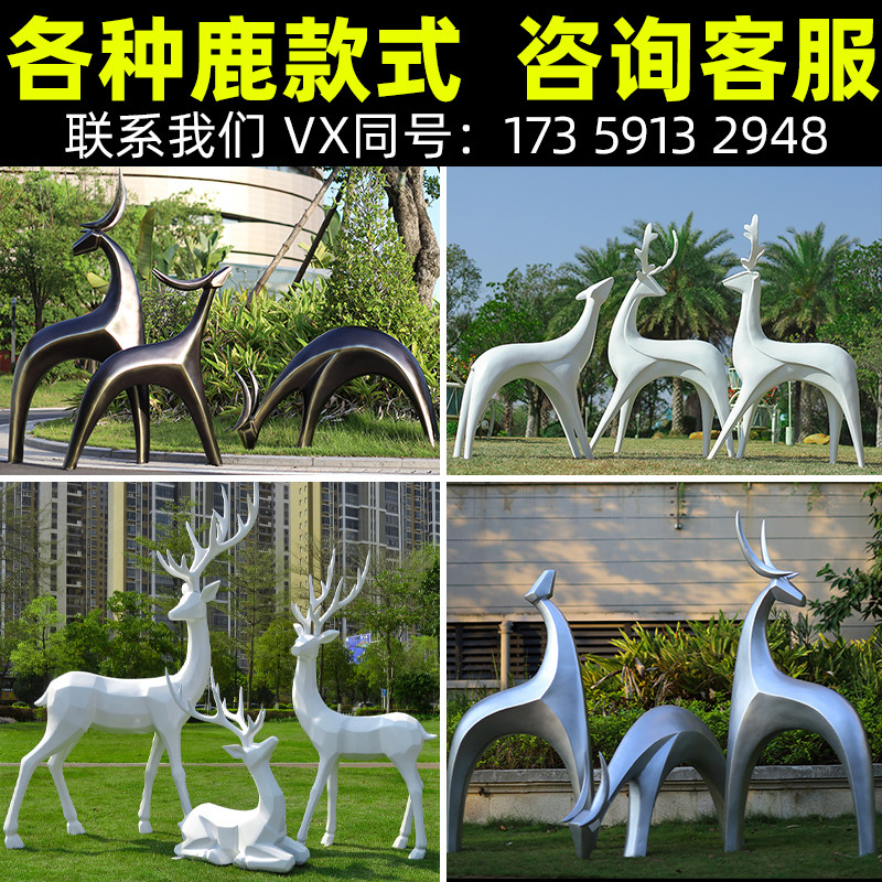 户外玻璃钢鹿雕塑公园草地动物景观装饰售楼处小区白色梅花鹿摆件