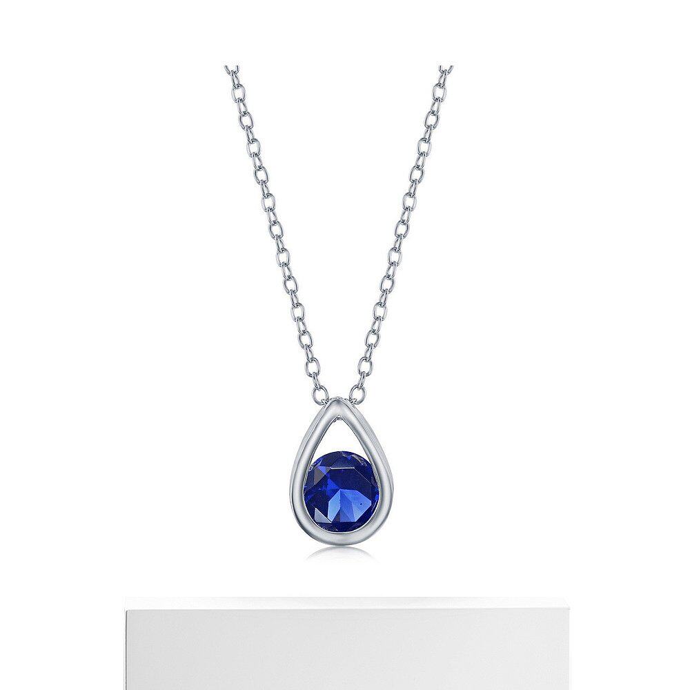 自营 simona纯银梨形项链配圆形“九月诞生石” - 蓝宝石 - 蓝色
