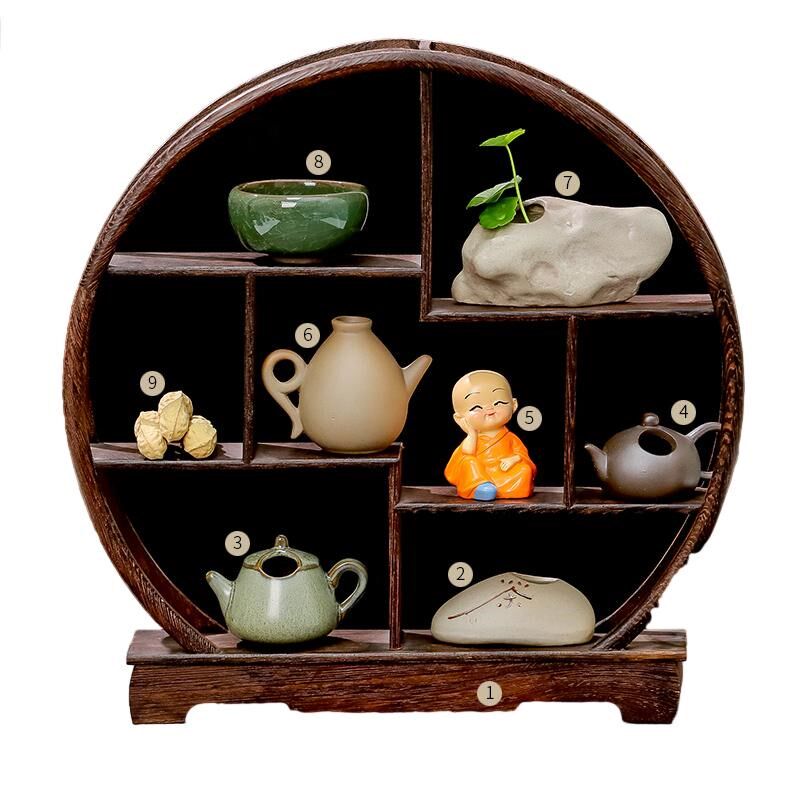 实木茶杯小型博古架新中式收纳桌面围炉茶室摆件展示置物架子摆设