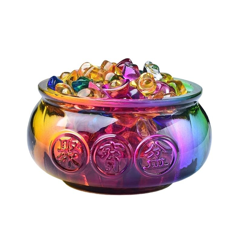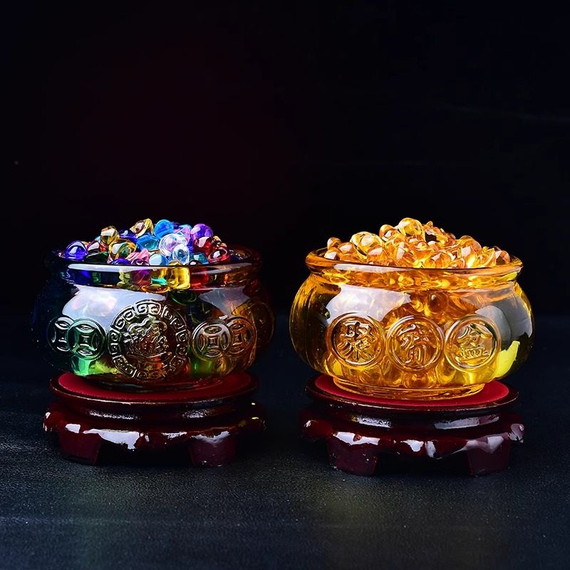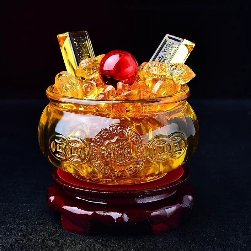 招财黄水晶聚宝盆琉璃摆件家用玄关客厅装饰开业乔迁聚财送礼礼品