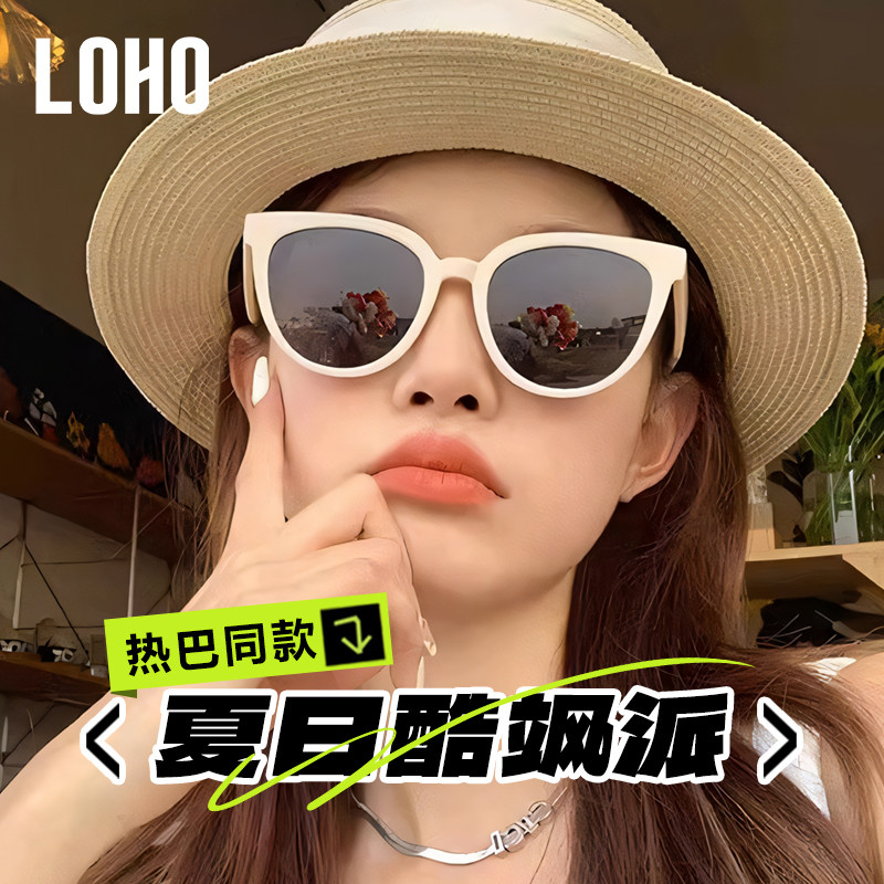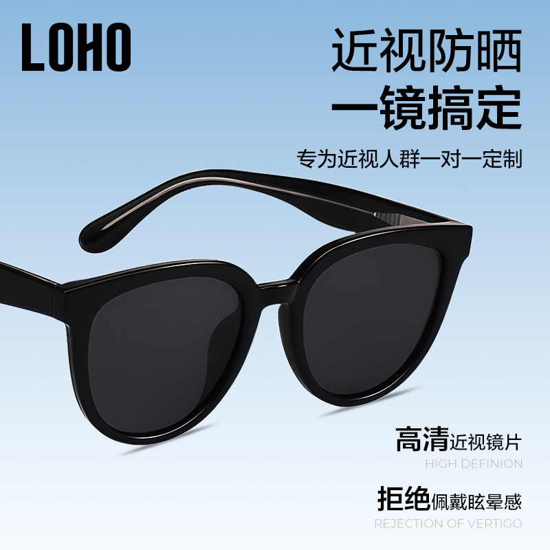【定制近视配镜】LOHO偏光墨镜女防晒复古圆白框太阳眼镜LH09659