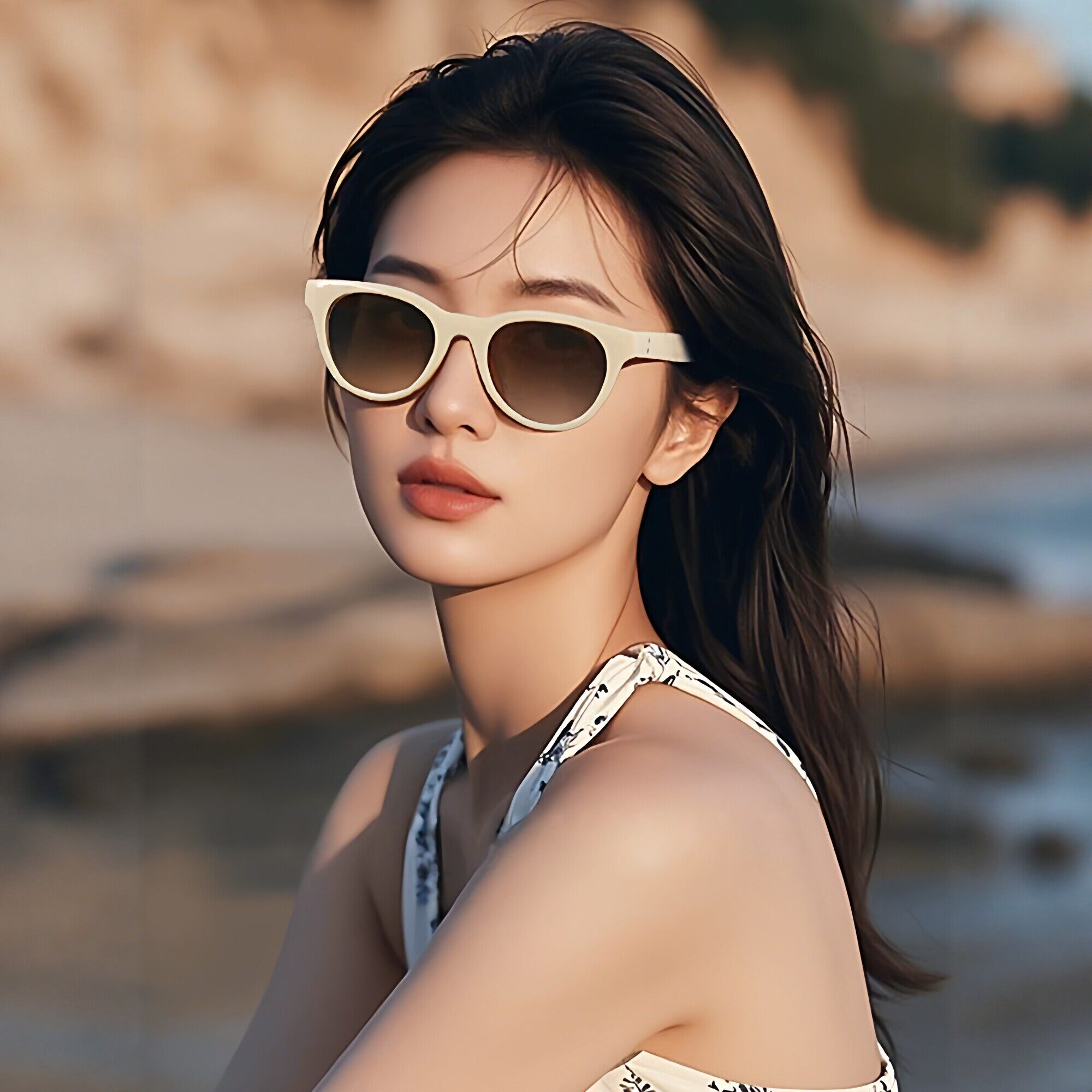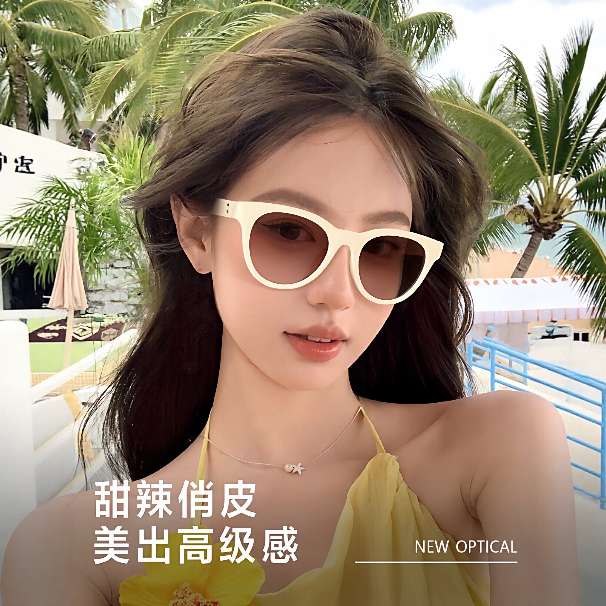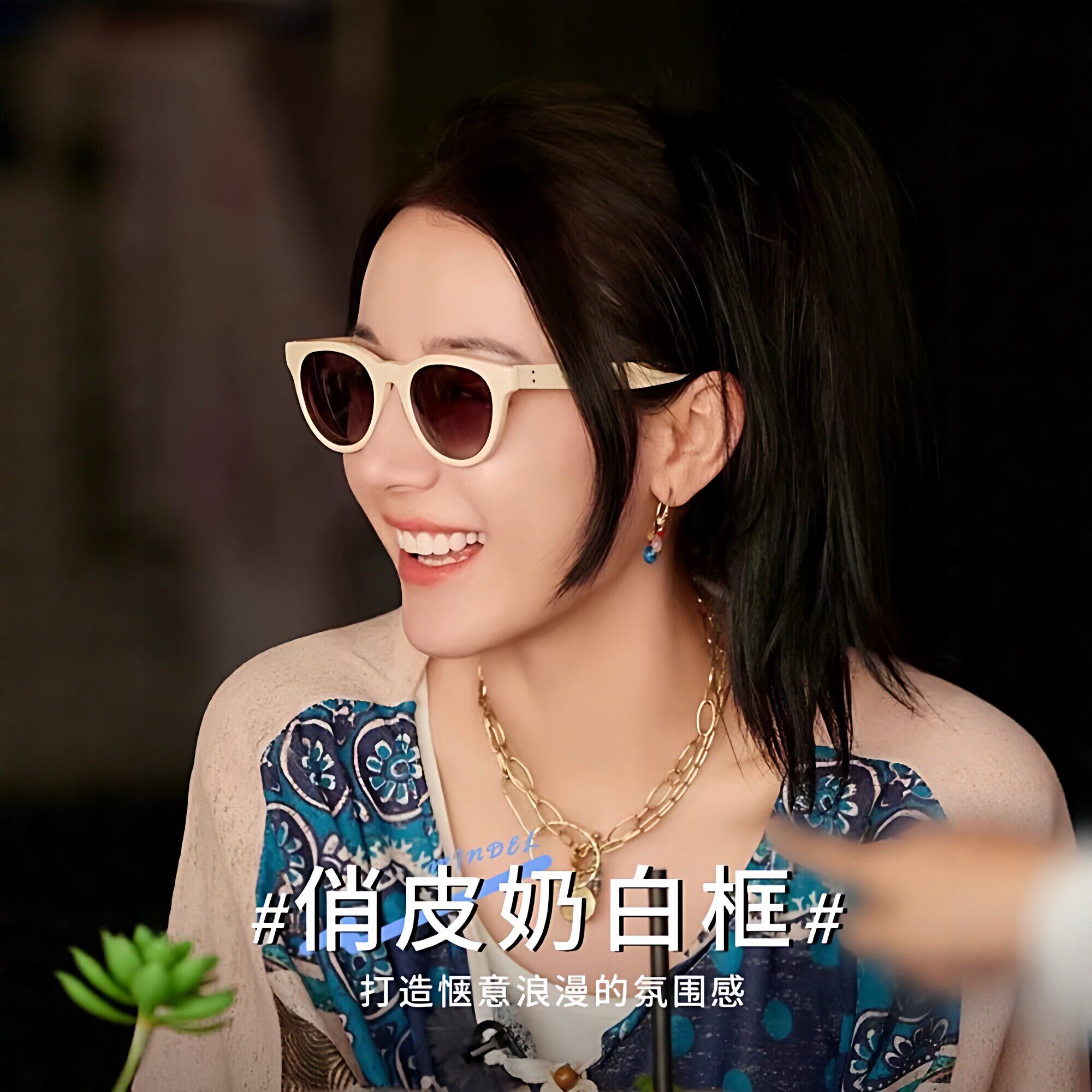 GM热巴同款白色框偏光墨镜女猫眼2026新款高级感太阳镜防紫外线晒