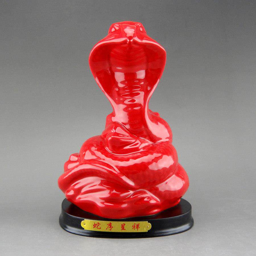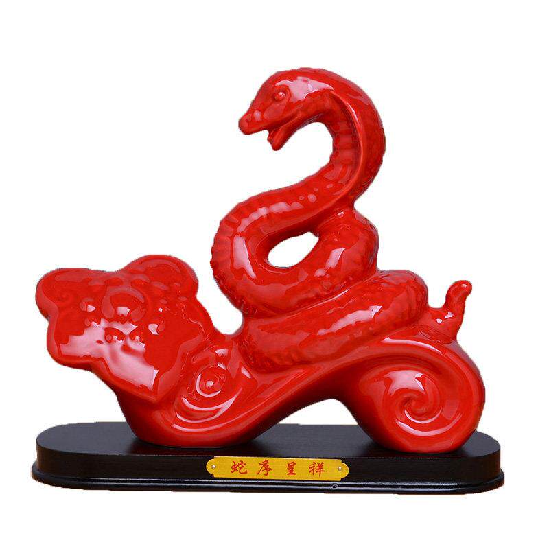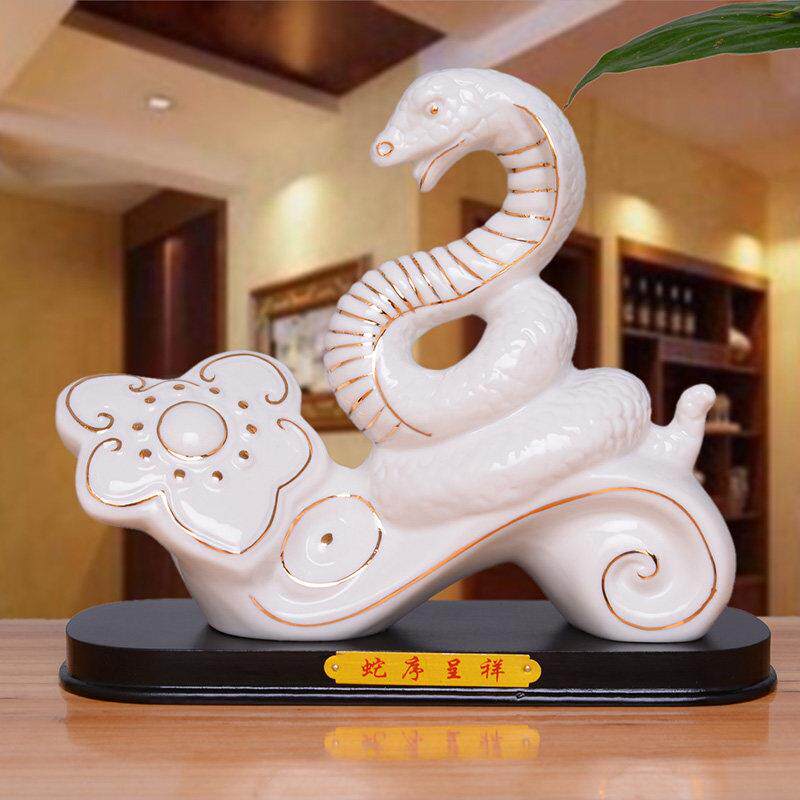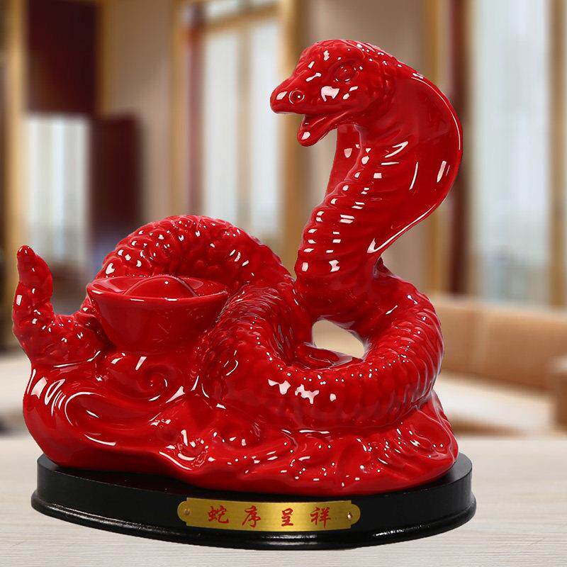 摆件家居饰品 十二12生肖陶瓷蛇摆件招财风水瓷器白黑红色蛇马羊
