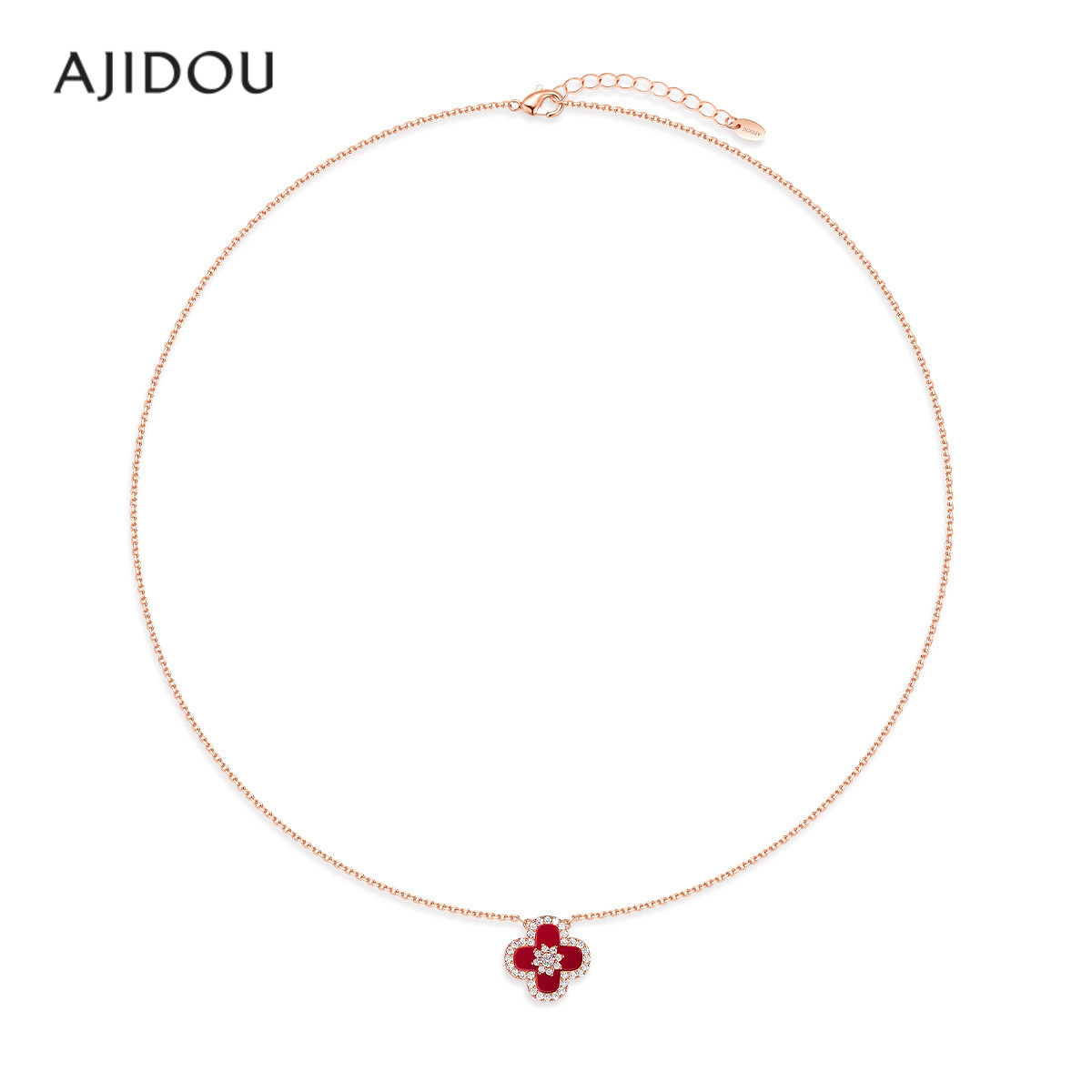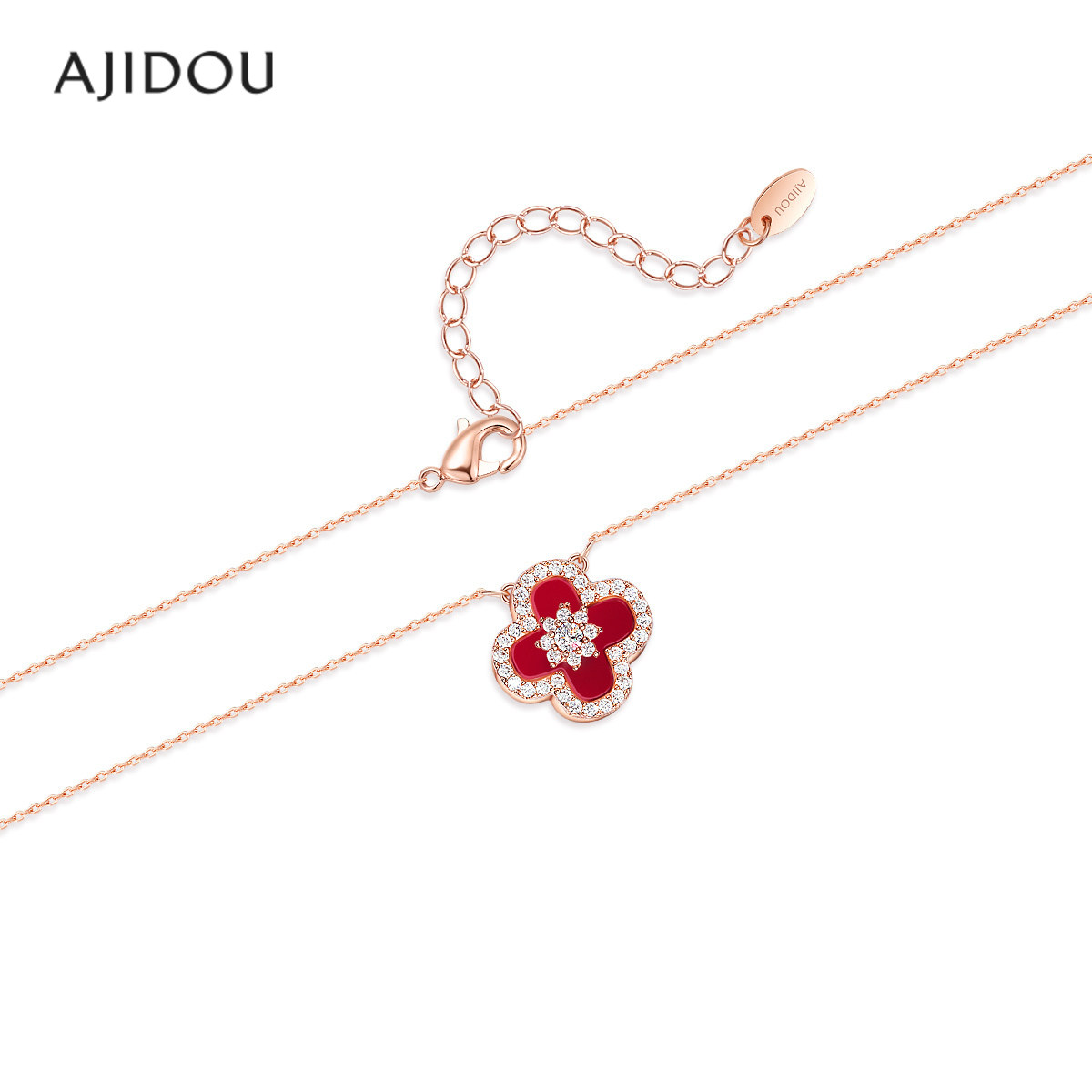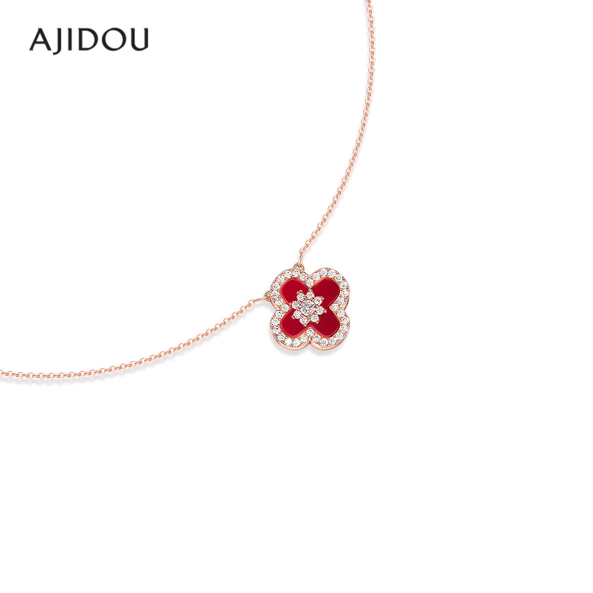 阿吉豆AJIDOU项链女款新年红色四叶草本命年设计气质锁骨链毛衣链