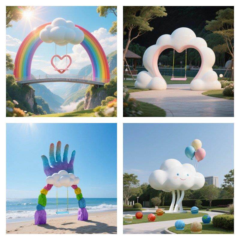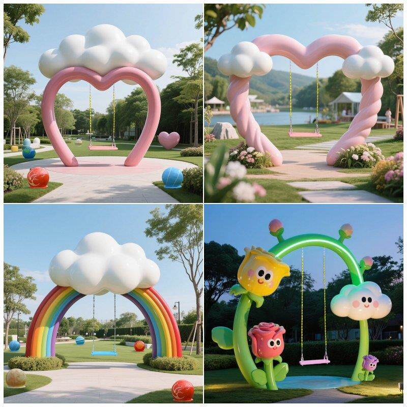 网红户外爱心云朵气球秋千雕塑商场景区民宿打卡拍照造景装饰摆件