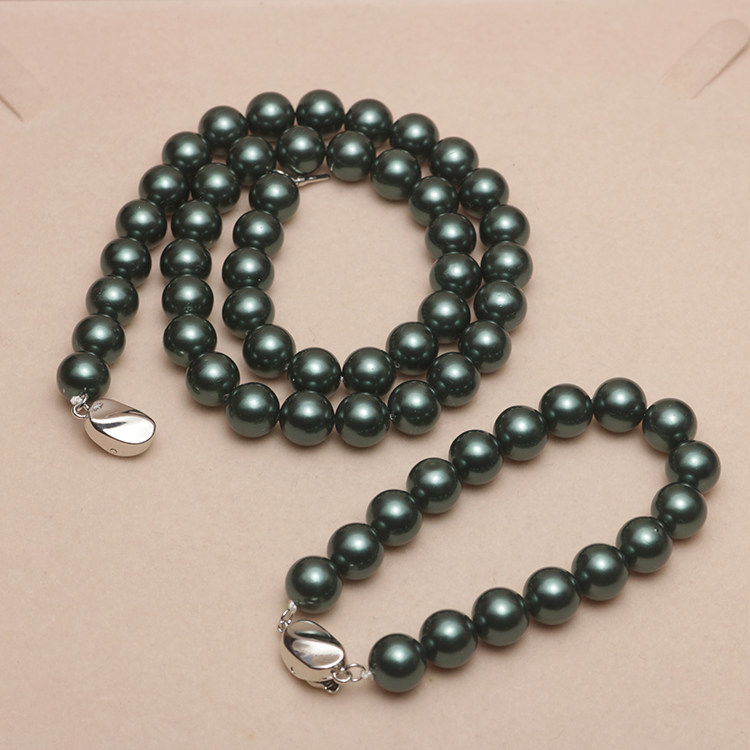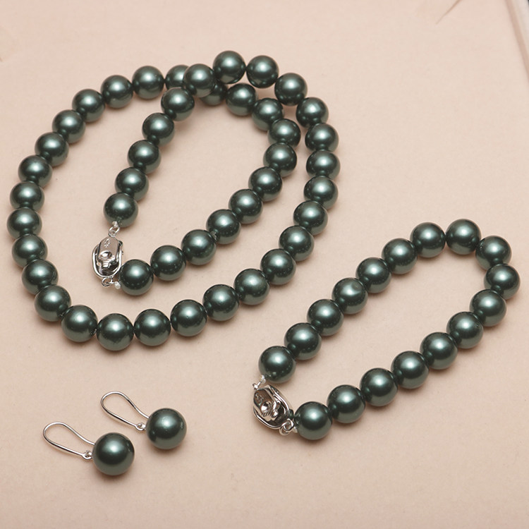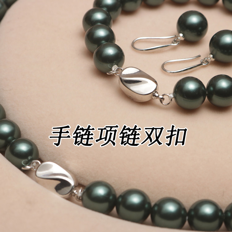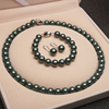 深海贝壳珍珠套装 正圆孔雀绿贝珠项链手链耳钉首饰三件套送妈妈
