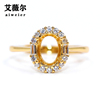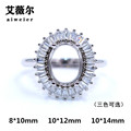 精工S925银戒指空托来宝石代镶嵌定制18k金戒托3*5-7*9-10*12mm