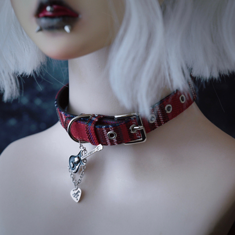 怪糖饰物集原创手工吉他吊坠圣诞格颈链choker亚文化红色
