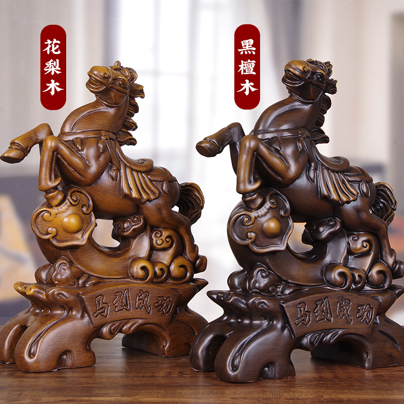 实木雕马摆件手工艺品马到成功办公室老板桌面展厅公司开业送礼品