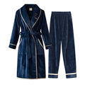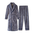 睡衣男浴袍秋冬法兰绒浴衣长袍加绒加厚长款珊瑚绒冬睡袍男士冬季