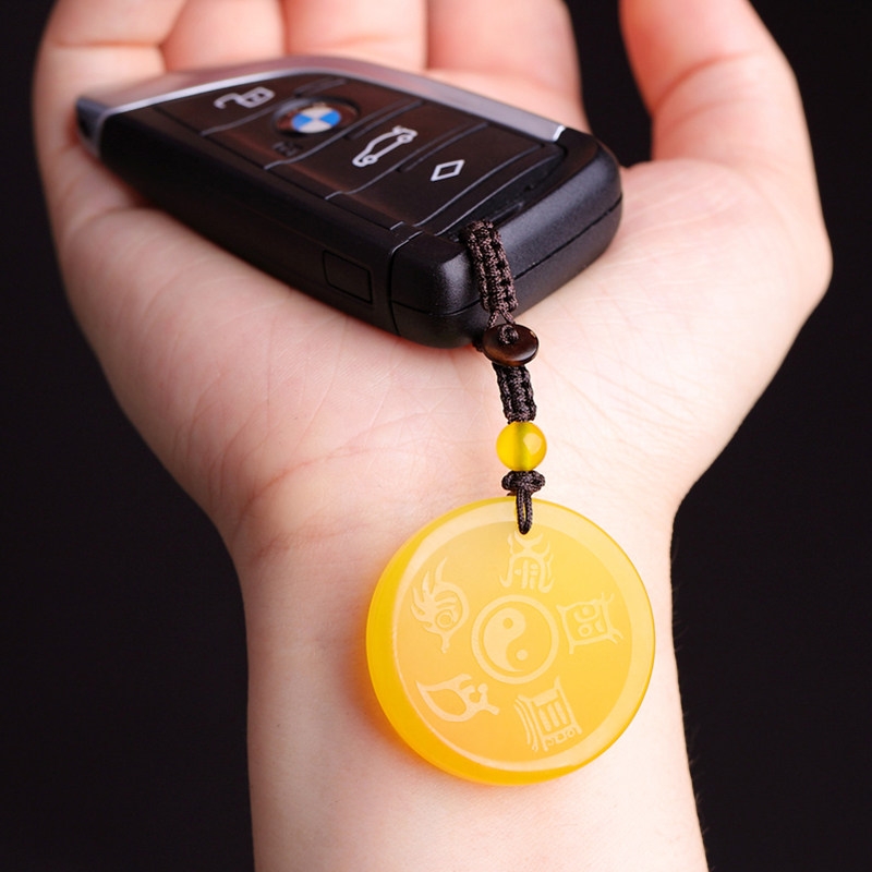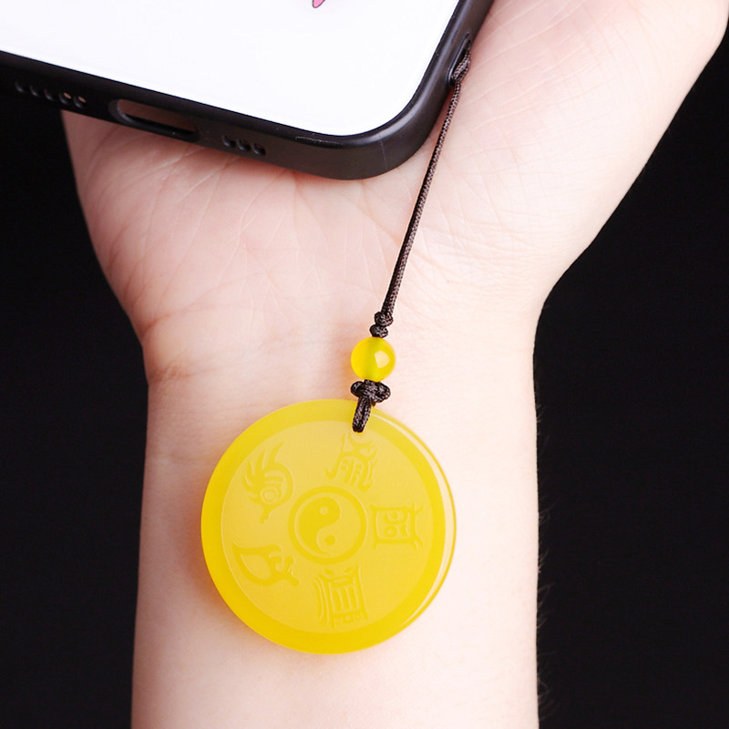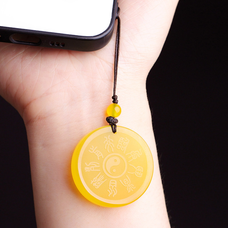 天然黄玉髓饰品随身挂件男女款护身符九字真言五岳真形图吊坠礼物