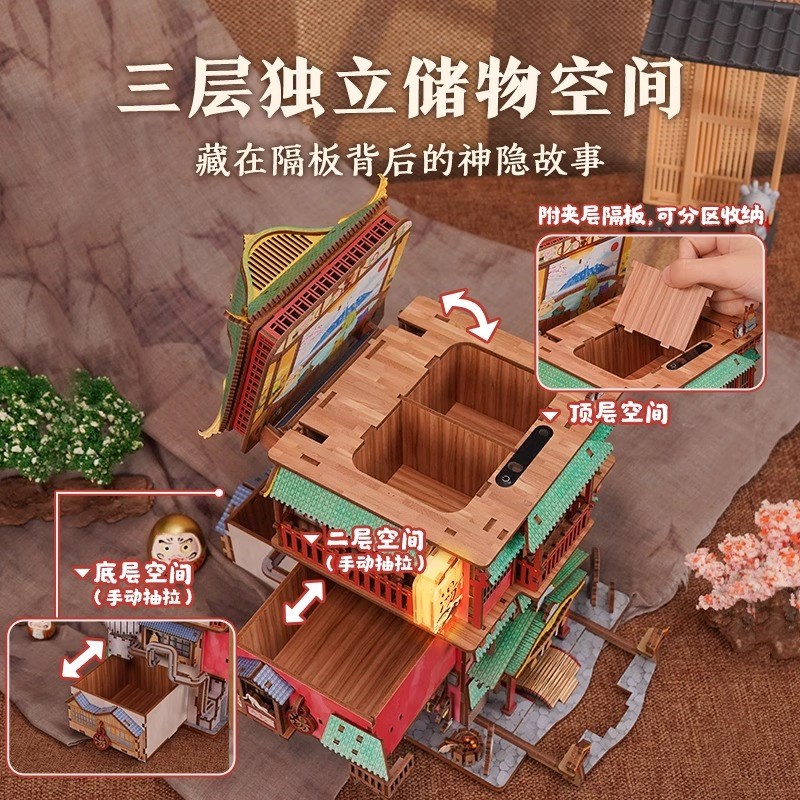 同趣文创DIY小屋汤泉物语创意木质拼装摆件感应S开盖桌面装饰礼物