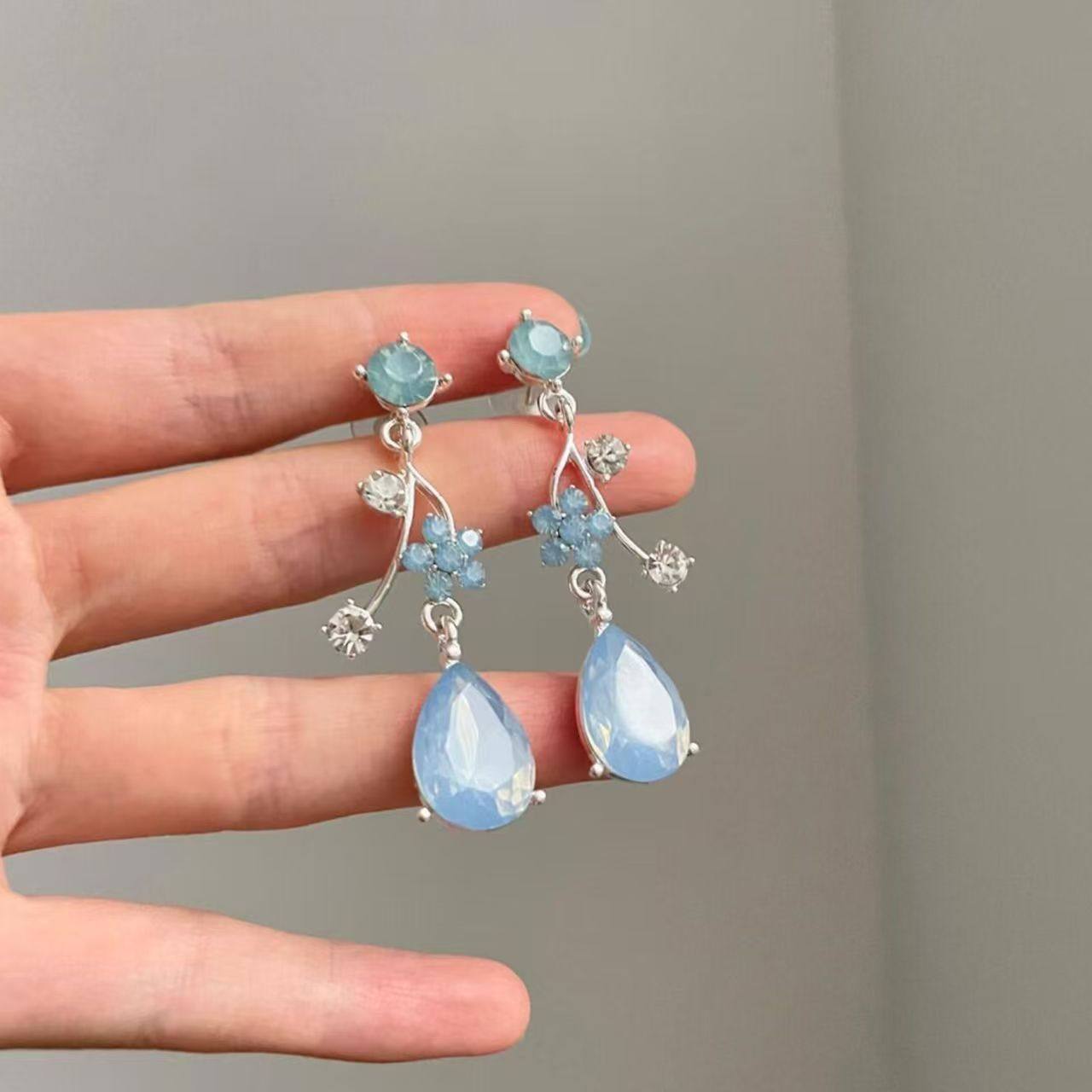 甜美爆闪蓝色花朵满天星项链耳钉套装轻奢高级感时尚晚礼服锁骨链