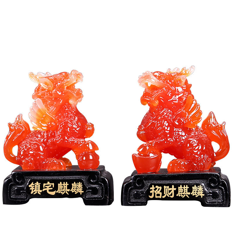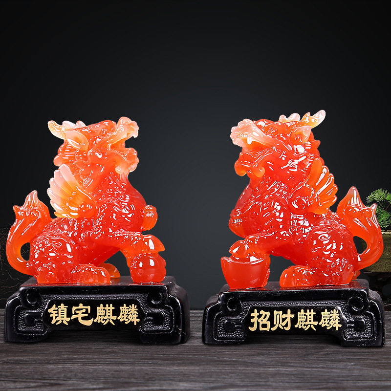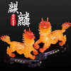 中式古典麒麟摆件红木办公桌商务开业礼品树脂工艺品
