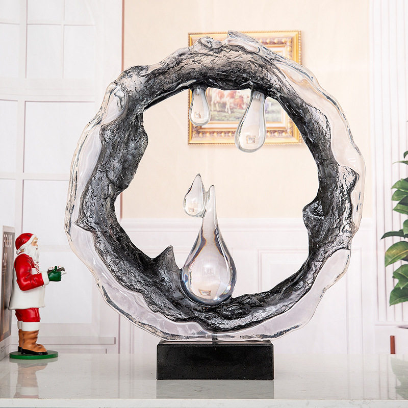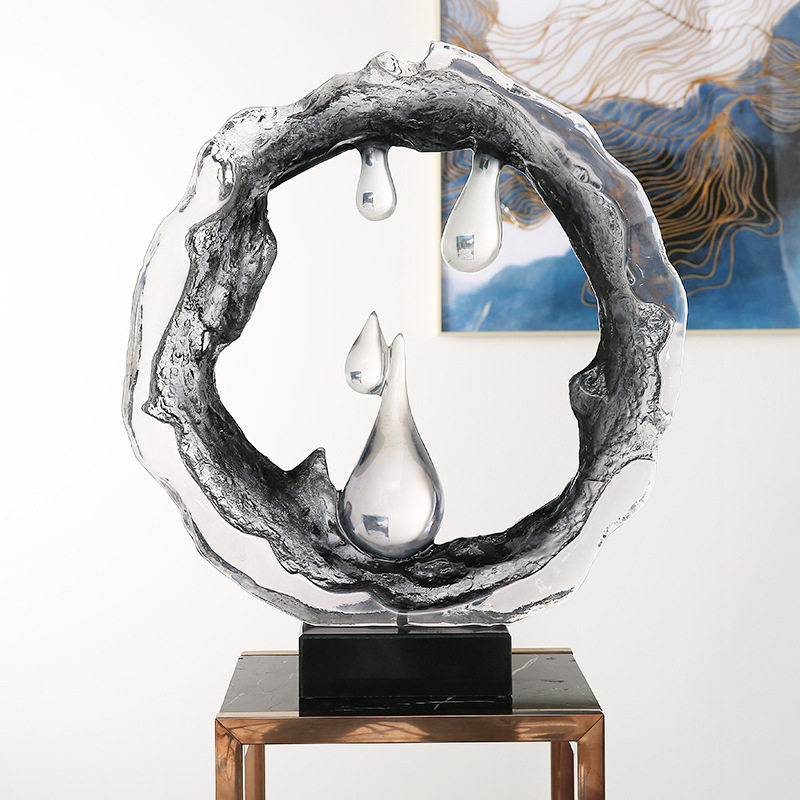 透明水滴树脂软装摆件简约家居客厅玄关摆件酒店大堂前台装饰品