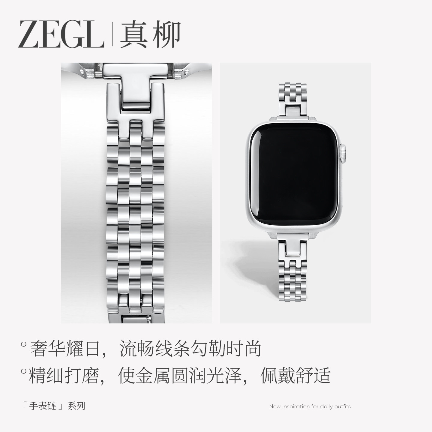 ZEGL设计师适用苹果applewatch钢带手表表带春夏精致手表链手链