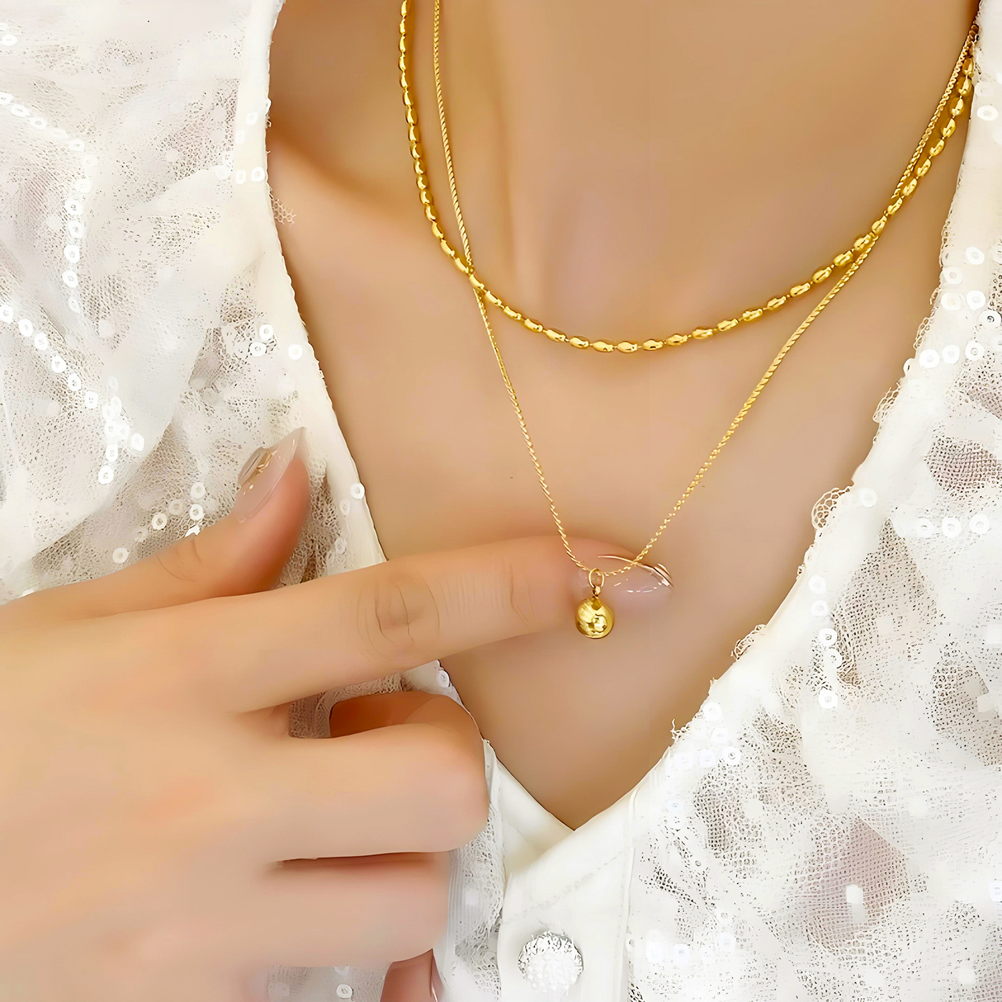 有求必应双层叠戴项链18K金色女轻奢时尚锁骨链医用钛钢不掉色ins