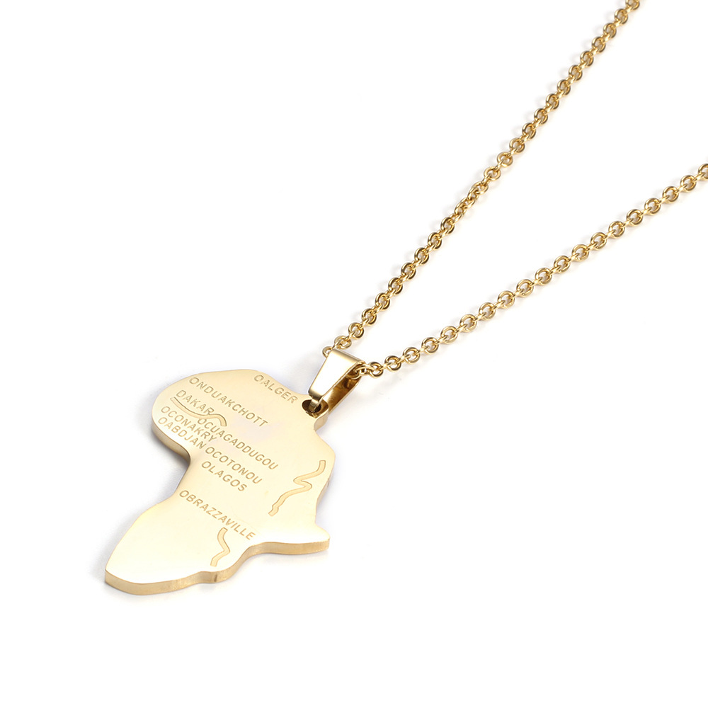 新款欧美热卖不锈钢个性非洲地图嘻哈HapHop吊坠项链钛钢百搭夸张